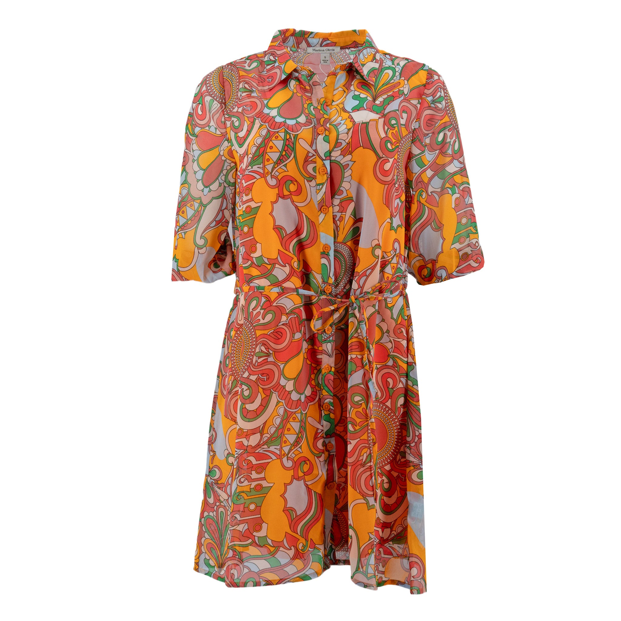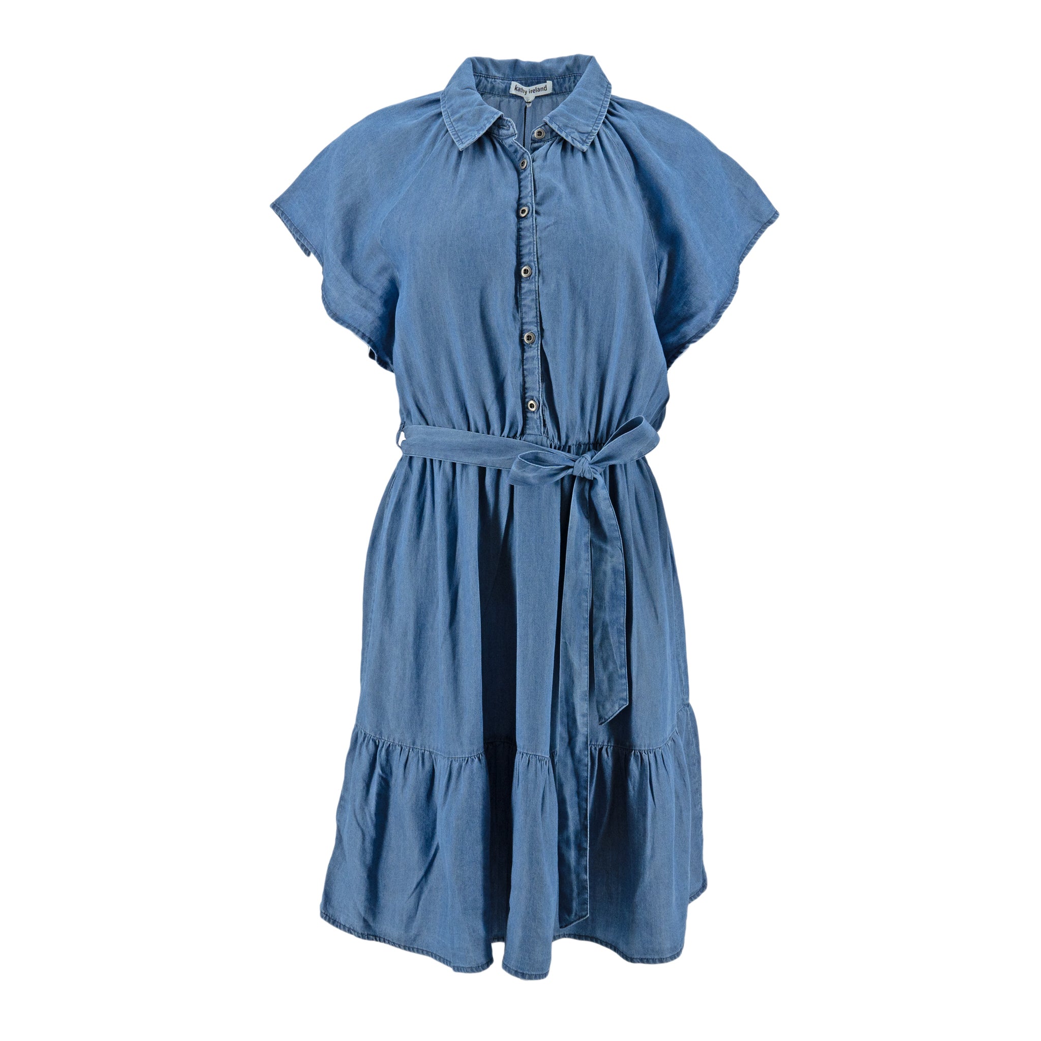 Vestido Kathy Ireland Mangas Cortas Liso Con Lazo P/ Damas
