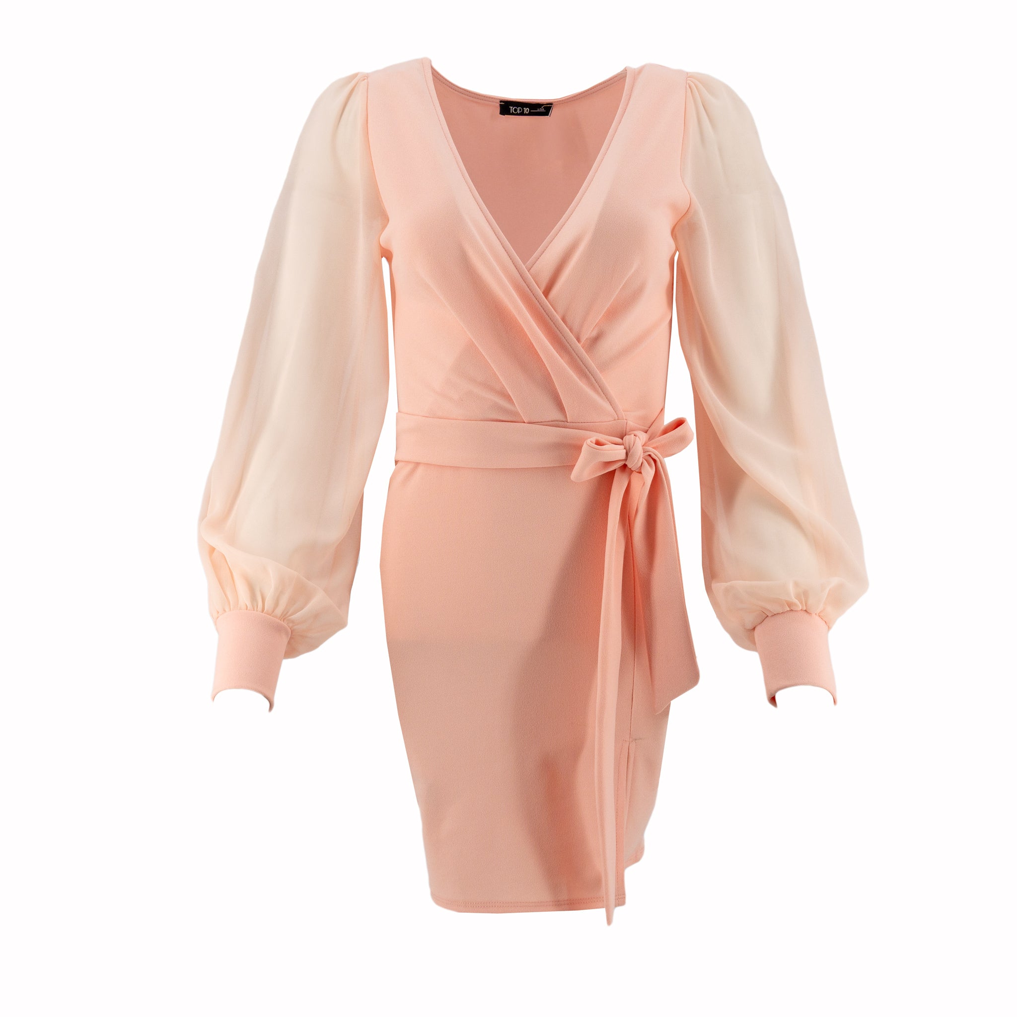 Vestido Top 10 Mangas Largas Liso Corto Con Lazo P/ Damas