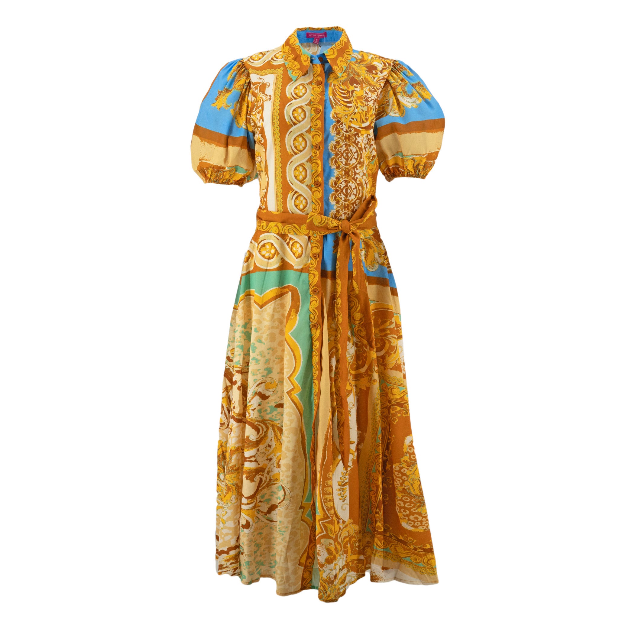 Vestido Flying Tomato Mangas Cortas Estampado Con Cinturón P/ Damas