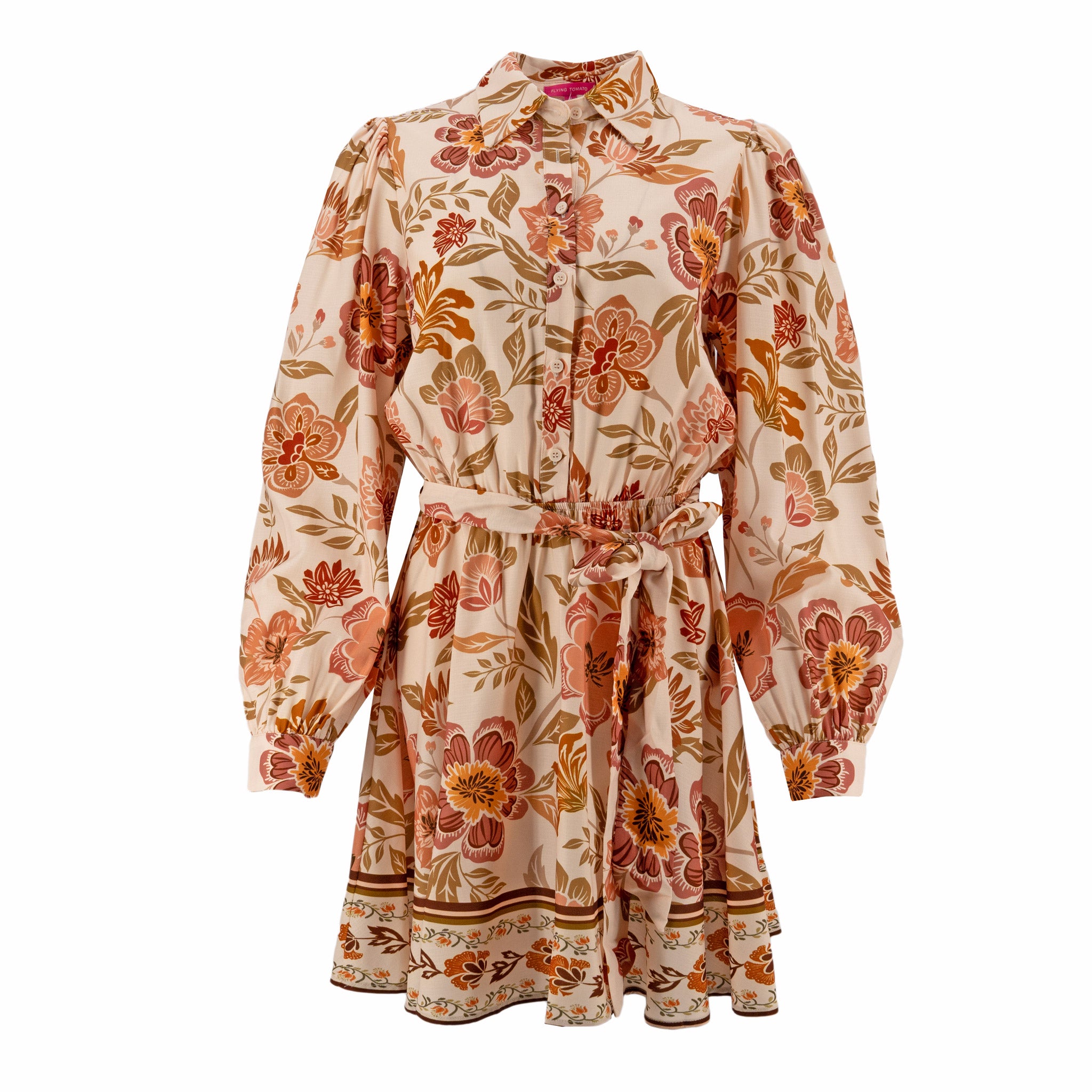 Vestido Flying Tomato Mangas Largas Estampado Con Cinturón P/ Damas