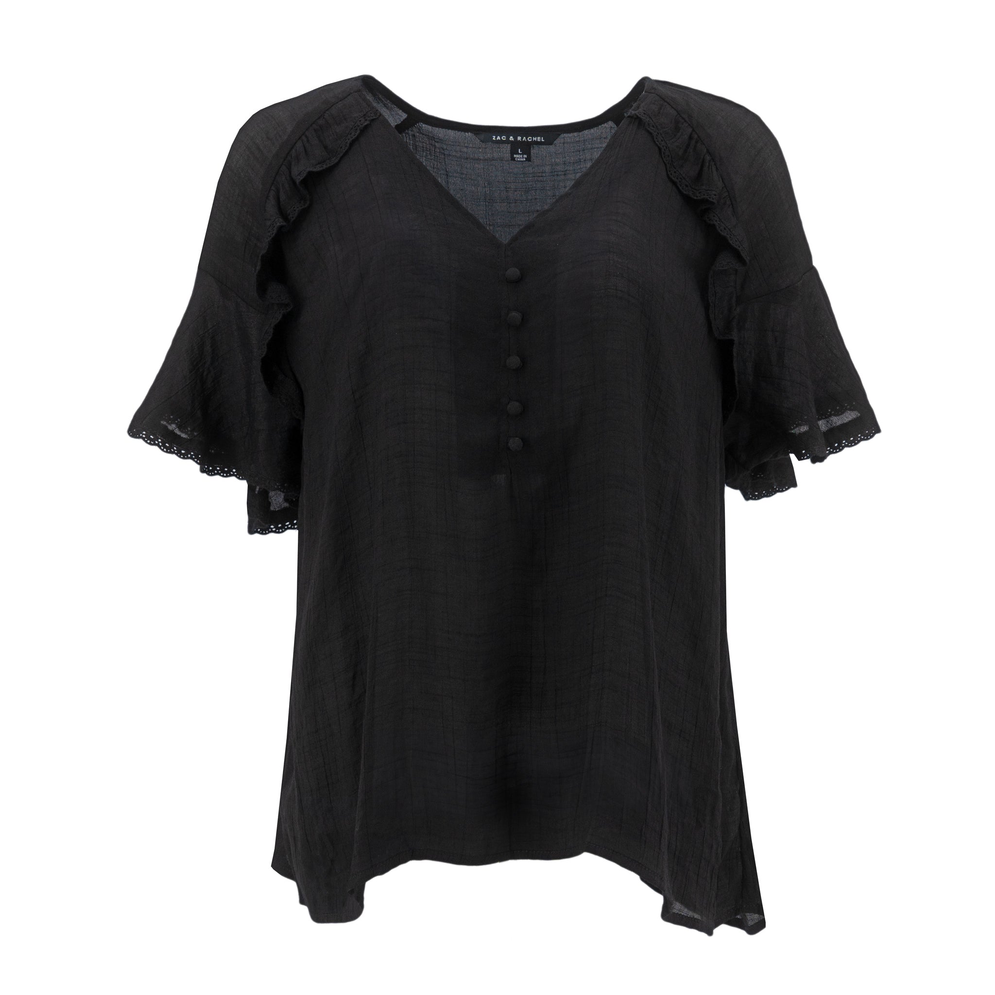 Blusa Zac & Rachel Mangas Cortas Lisa Vuelo Encaje P/ Damas