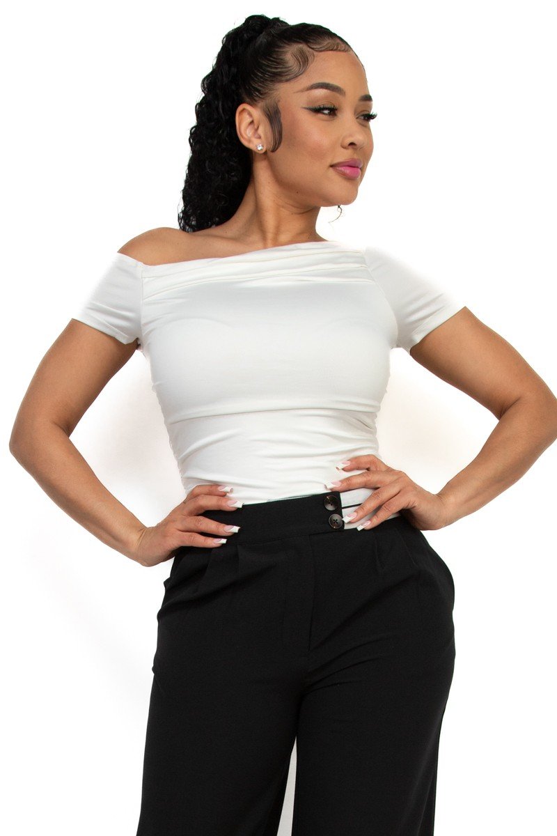 • Blusa Marissa Olivia Mangas Cortas Corrugada Para Damas