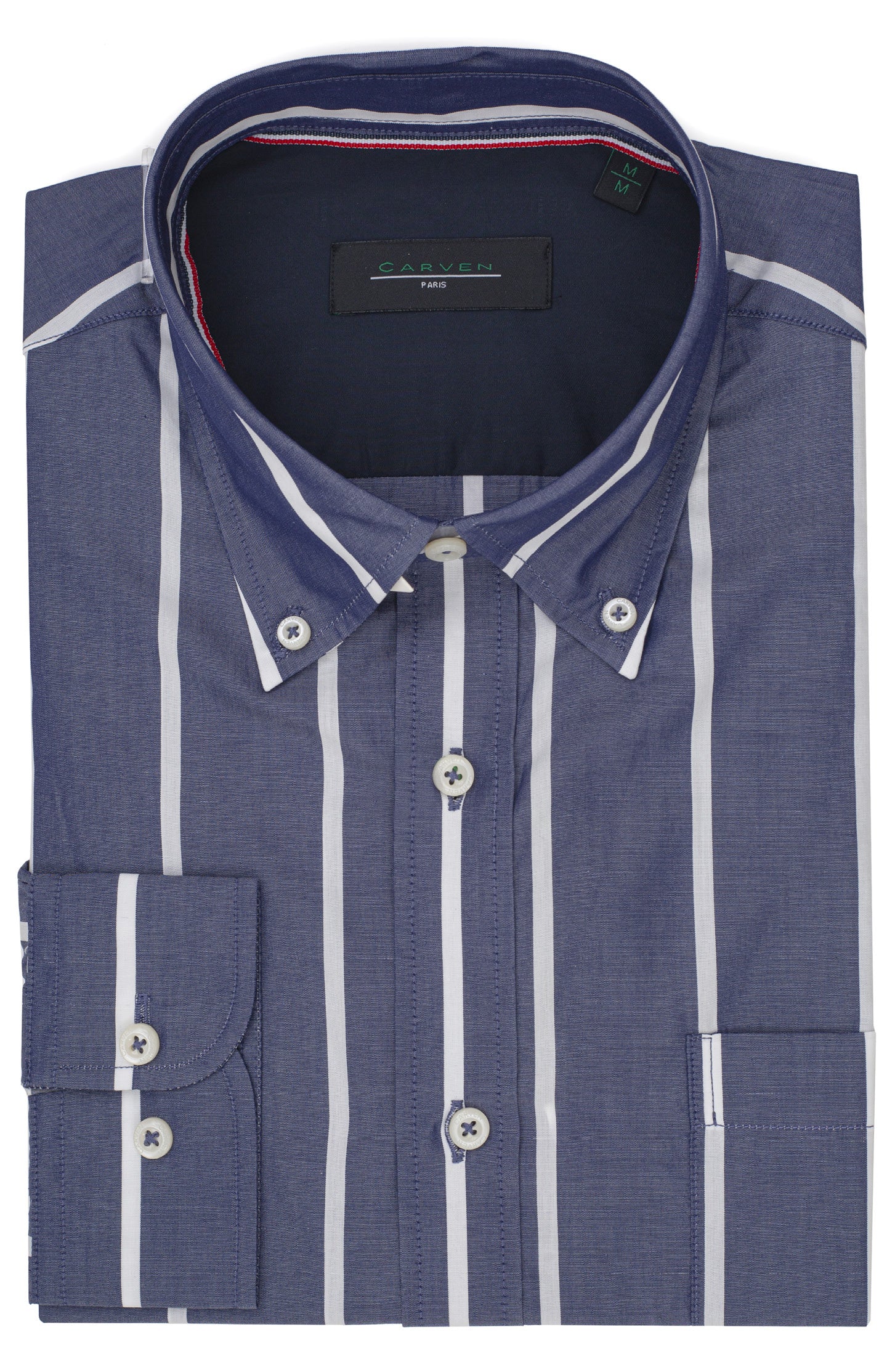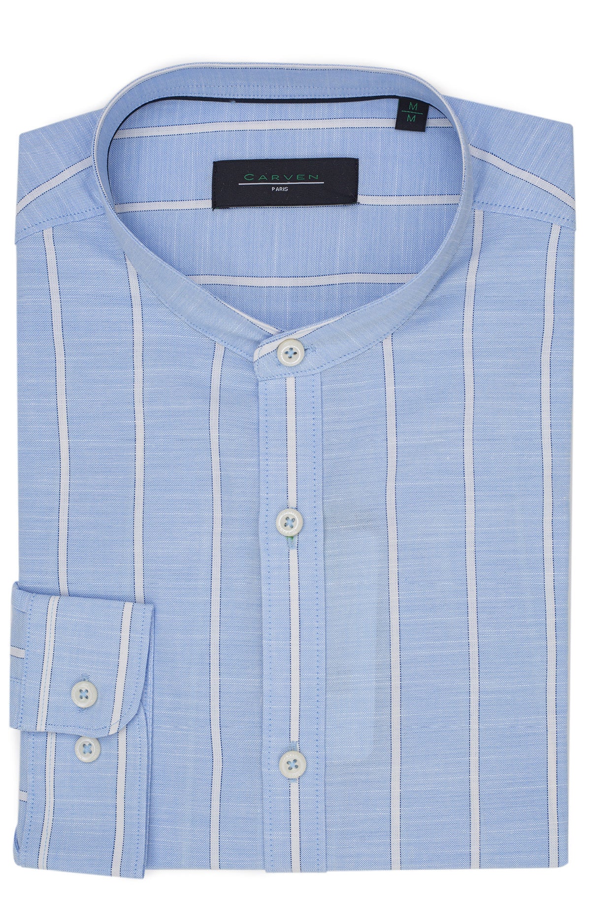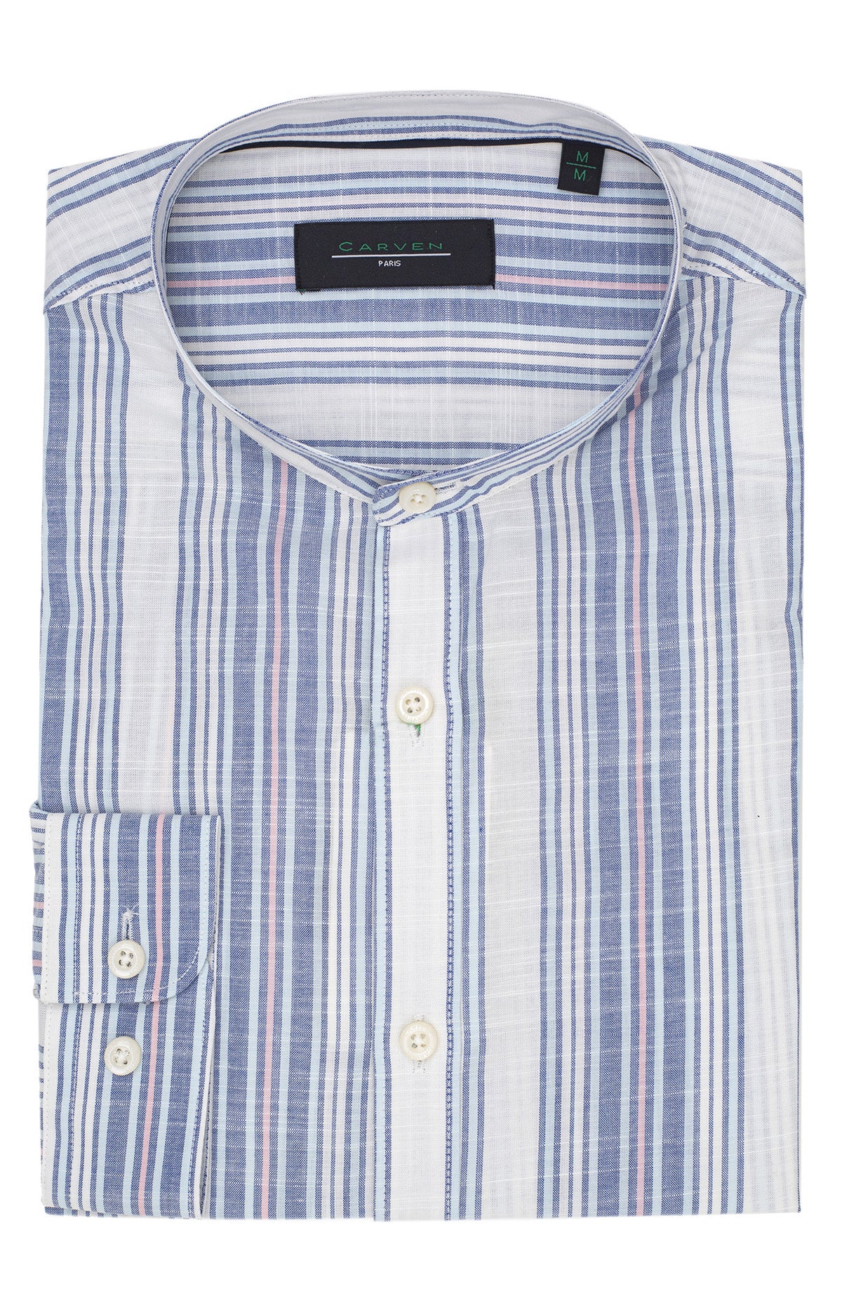 Camisa Carven Mangas Largas Rayas Cuello Chino Para Caballeros
