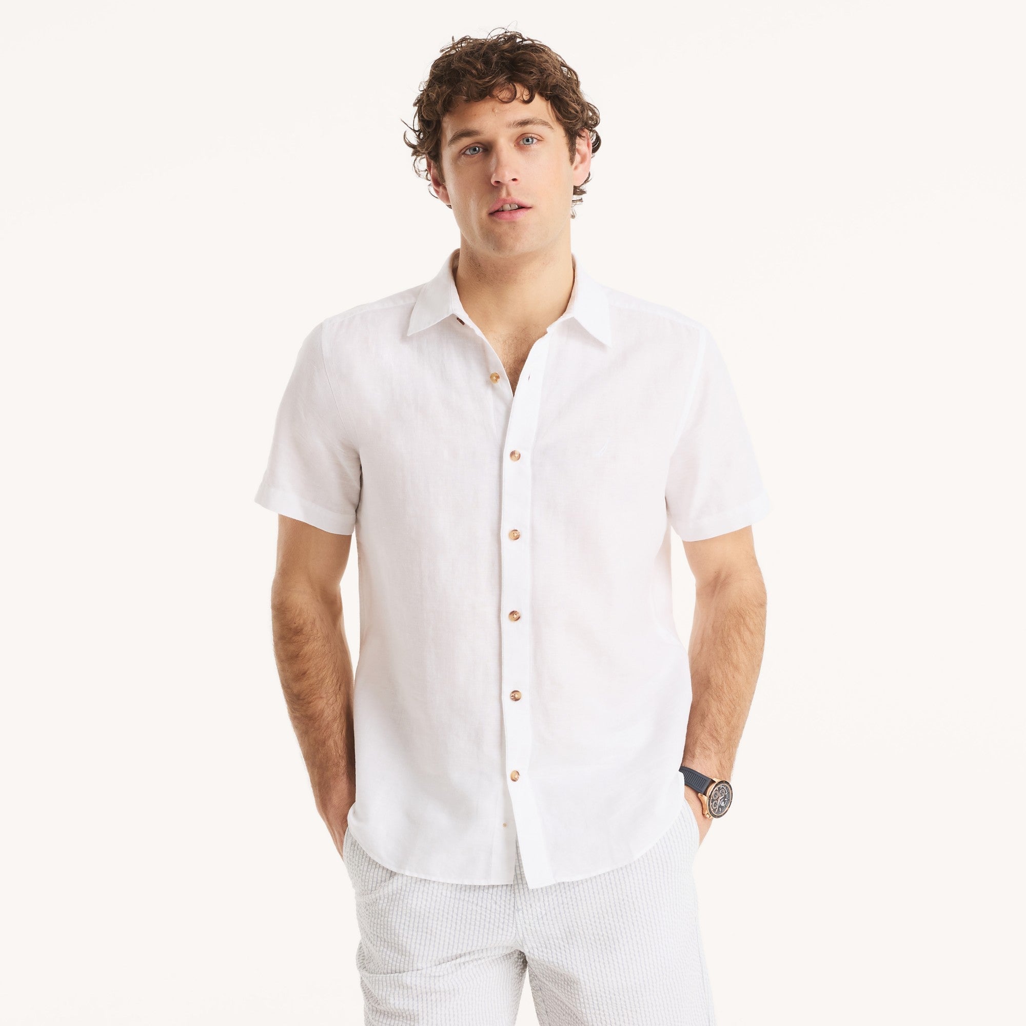 Aumentar cantidad para Camisa Nautica Mangas Cortas Lisa Para Caballeros