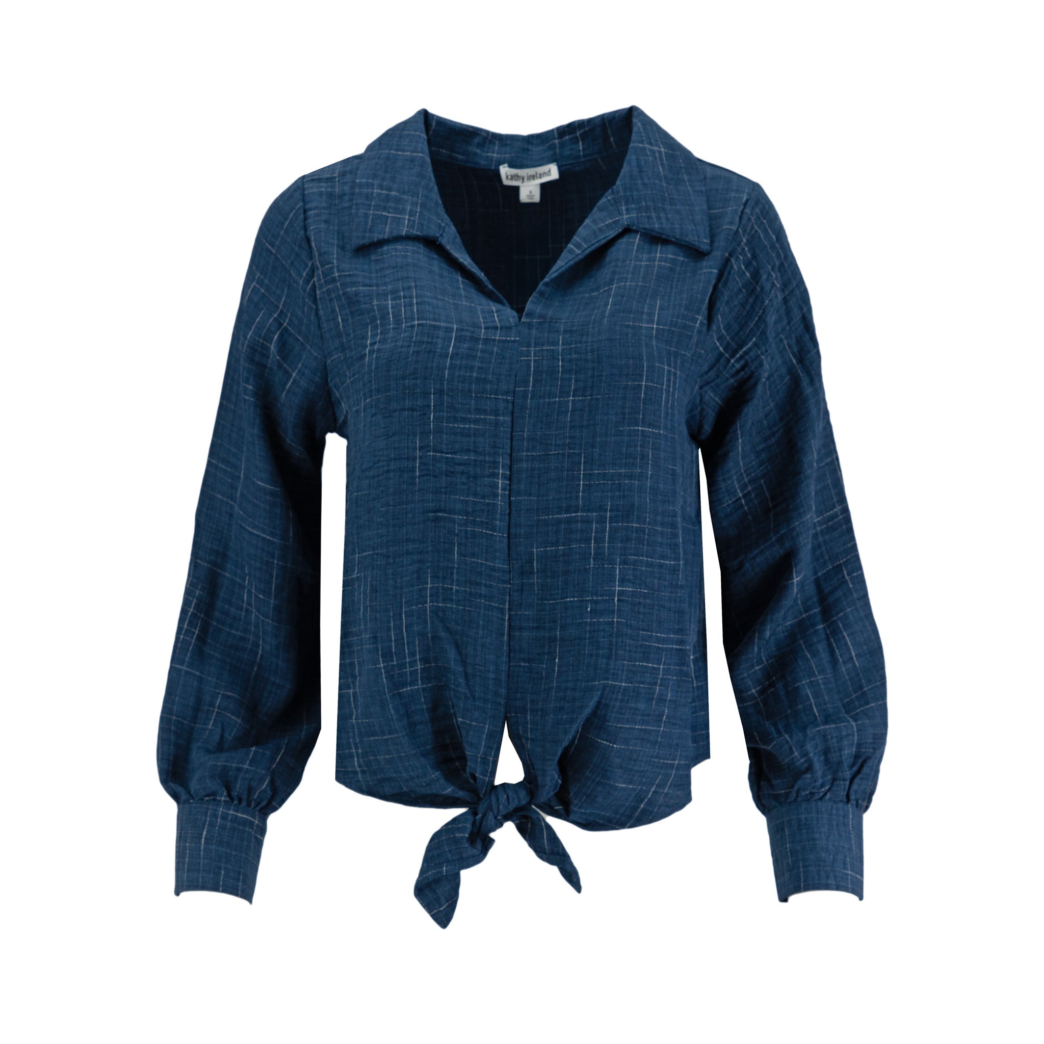 Descubre la Blusa Kathy Ireland Mangas Largas Estampada para Damas, un diseño pensado para mujeres que buscan comodidad y estilo en una sola prenda. Modelo HW37444, con un estampado sutil en tonos azules y un detalle frontal de nudo que aporta un toque casual y moderno.
