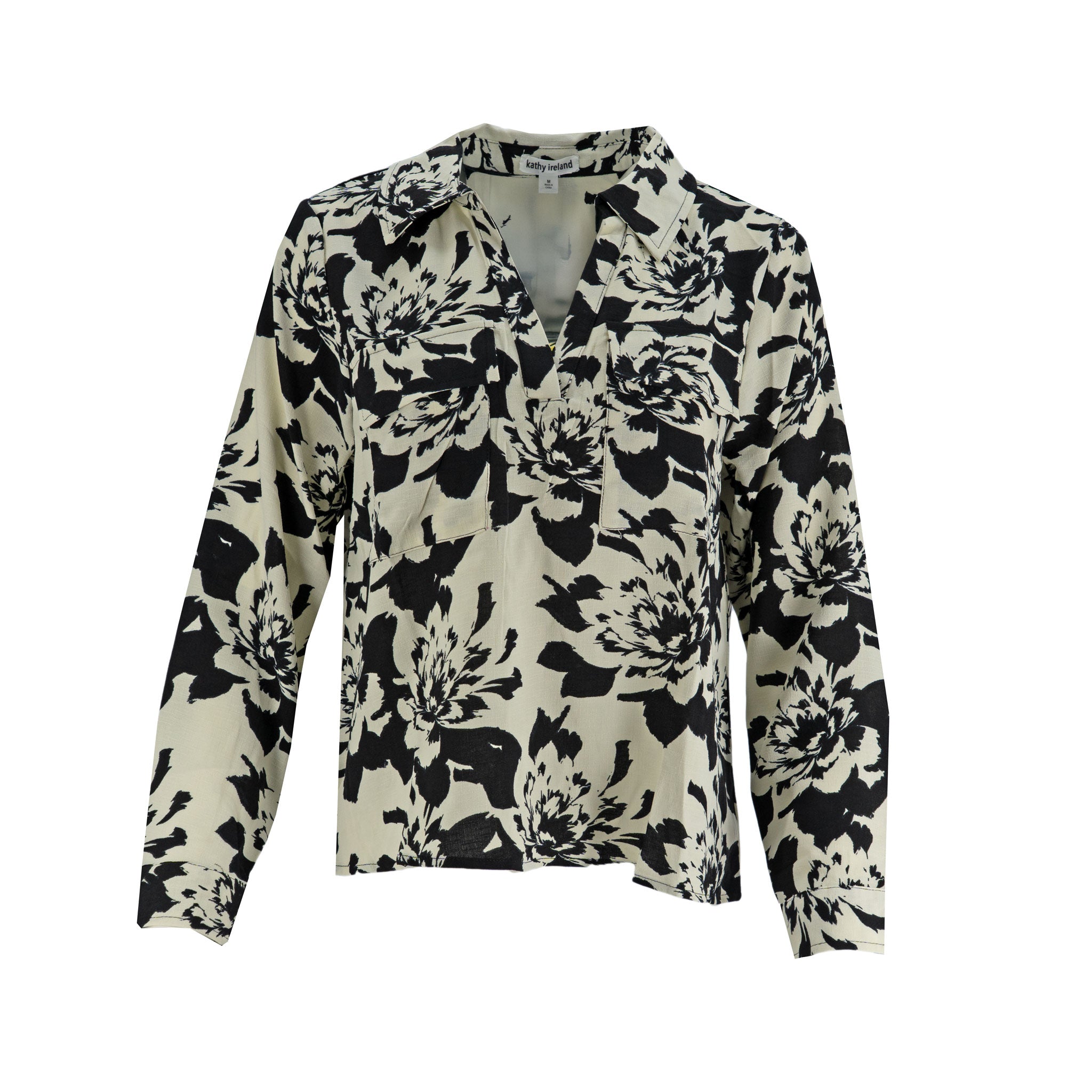 Blusa Kathy Ireland Mangas Largas Floral Camisero Para Damas