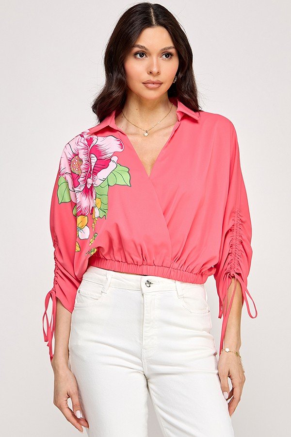 Disfruta de un ajuste cómodo gracias a la cintura elástica y al diseño envolvente, que se adapta con facilidad a diferentes figuras. El color rosa y el estampado floral aportan frescura y feminidad, facilitando combinaciones con jeans, pantalones claros o faldas neutras para crear looks listos para el día a día o ocasiones informales.