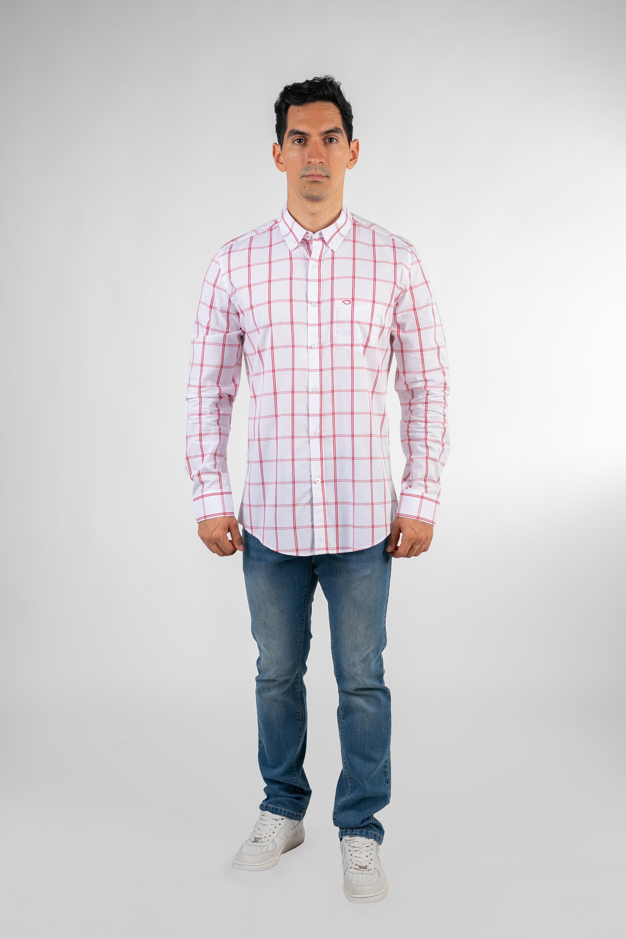 Camisa Oscar De La Renta de manga larga con diseño de cuadros, creada para caballeros que buscan un estilo clásico y versátil. Perfecta para combinar en la oficina o en ocasiones sociales, aporta un toque pulido sin perder comodidad.