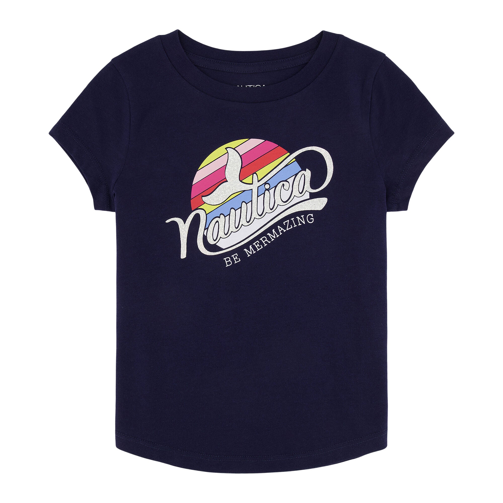 - Estampado frontal con el logo Nautica, arco iris y la frase Be Mermazing.