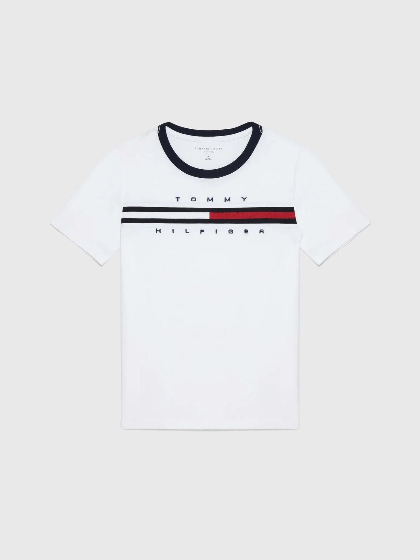 La camiseta Tommy Hilfiger de manga corta para niños combina confort y estilo clásico en un diseño pensado para el uso diario. Ideal para completar cualquier outfit escolar o de fin de semana con un toque de marca.