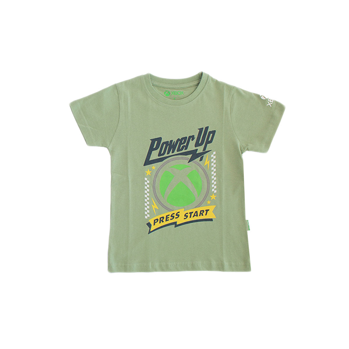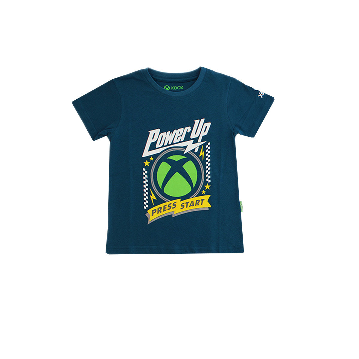 - Estampado frontal con la temática Power Up y el detalle Press Start, inspirado en la estética de Xbox.