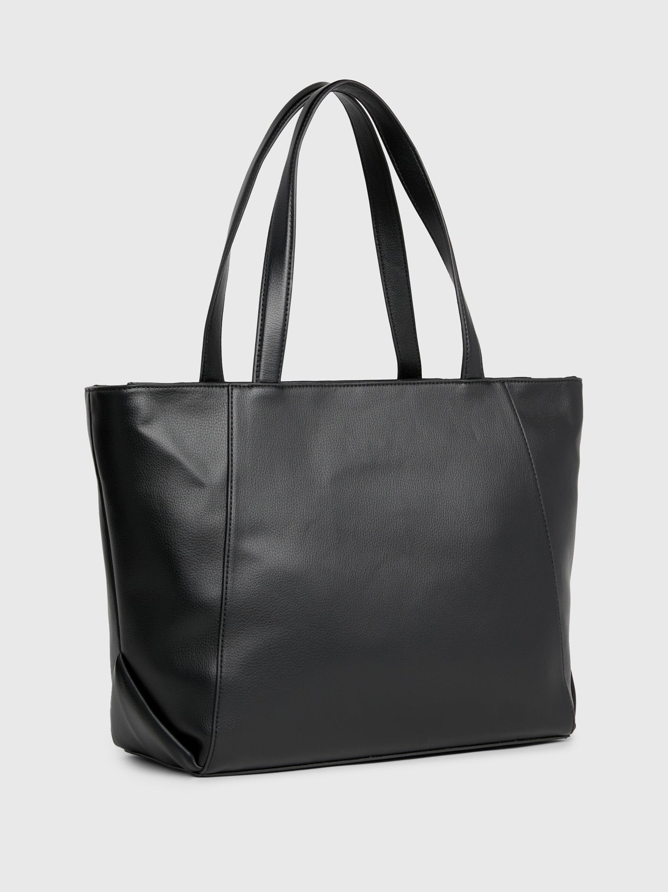 - Material y acabado: exterior en piel sintética con textura suave y color negro clásico.