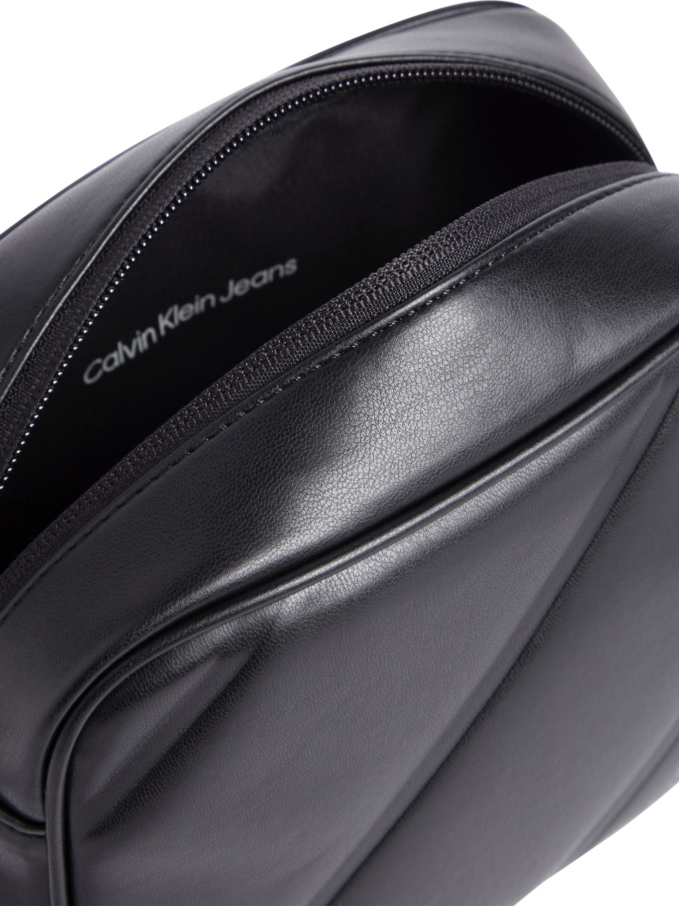 - Diseño: estructura rectangular con un detalle diagonal y el logotipo Calvin Klein Jeans en la esquina inferior.