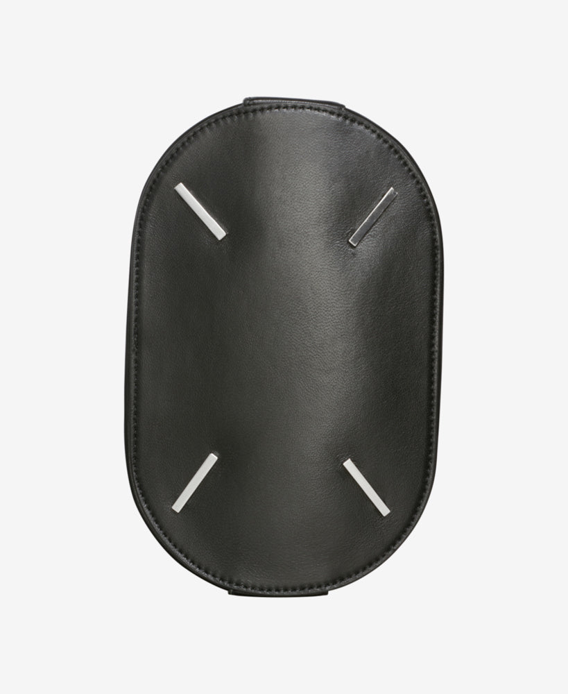 - Material: cuero negro de alta calidad con acabado suave al tacto.