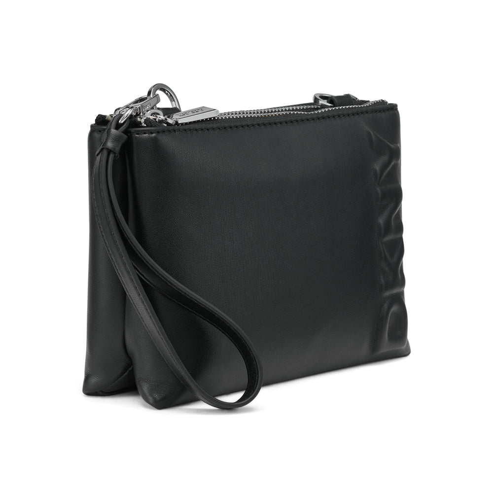 La Cartera Donna Karan para damas es un bolso compacto en negro que combina líneas limpias y un acabado de cuero de alta calidad, pensado para mujeres que buscan estilo y funcionalidad en un solo accesorio. Perfecta para uso diario y ocasiones especiales, añade un toque de sofisticación sin esfuerzo a cualquier look.