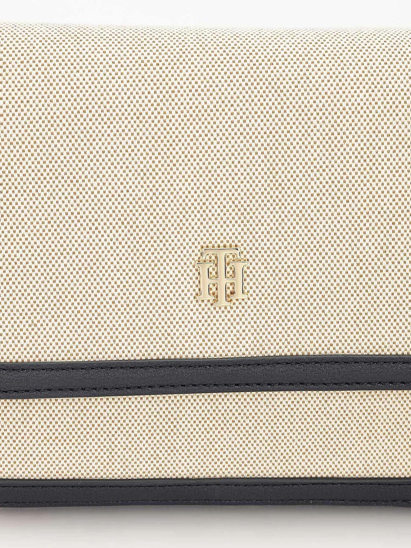 - Solapa frontal con emblema TH en tono dorado, detalle distintivo de la marca