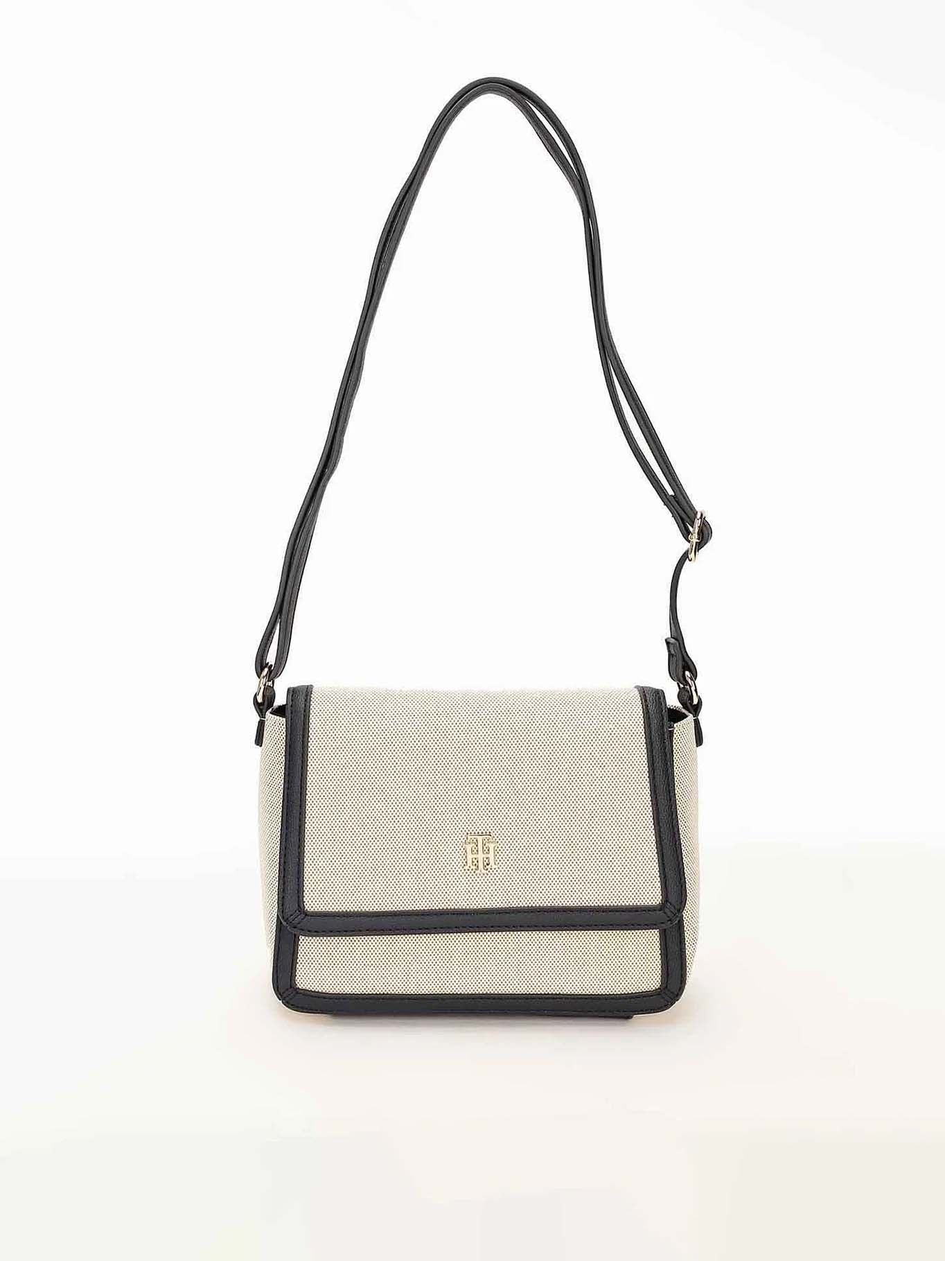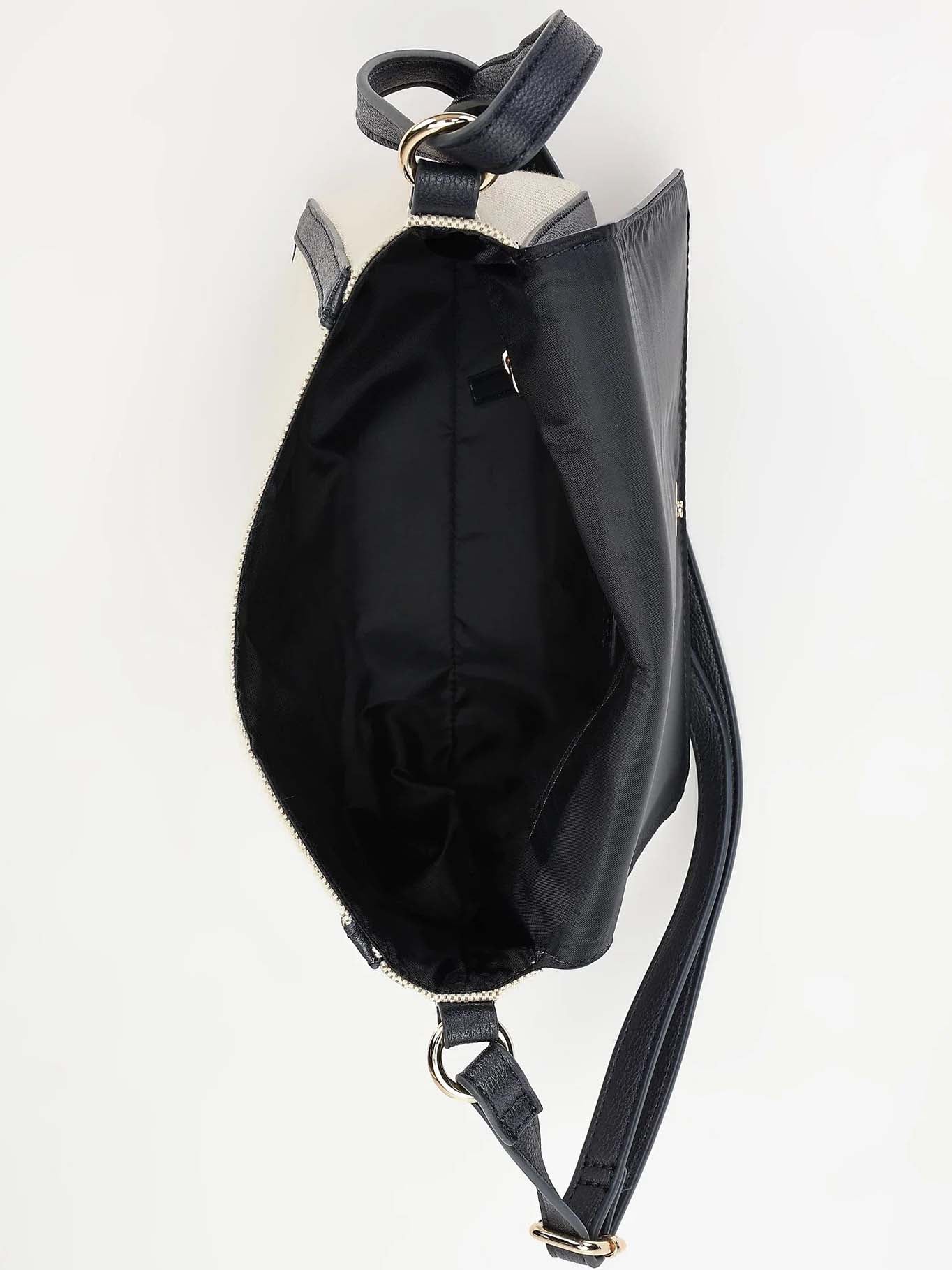 - Estilo contemporáneo: combinación de lona suave y ribetes de cuero sintético con detalles dorados que complementan cualquier atuendo