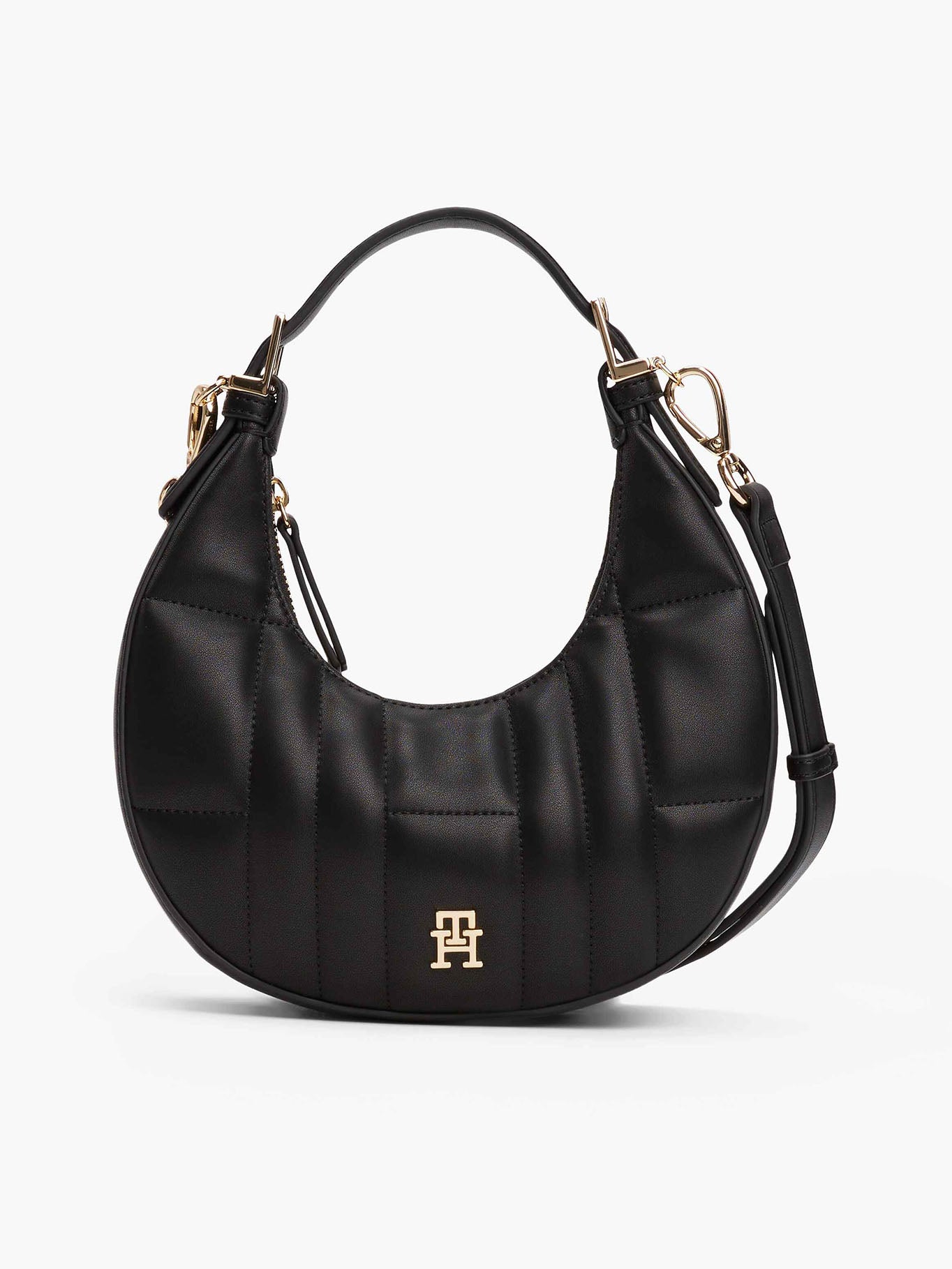- Detal le logotipo TH en dorado y herrajes en tono dorado para un toque premium