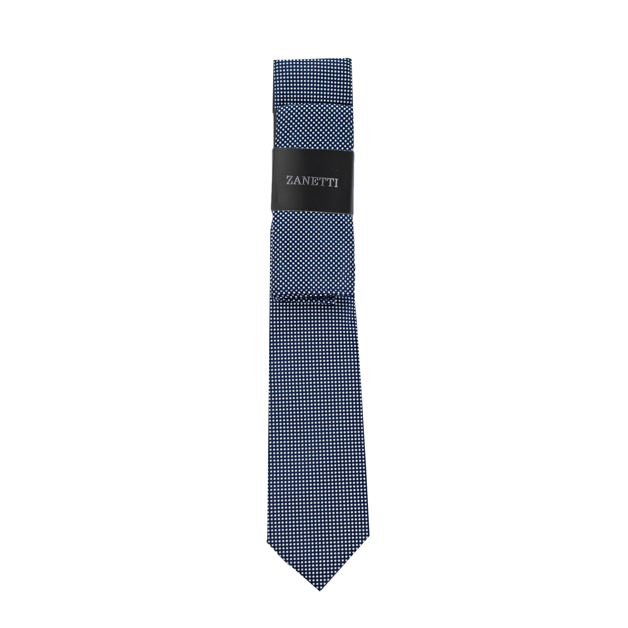 La corbata Zanetti con pañuelo para caballeros (modelo ZRT046) es un conjunto de accesorios para vestir que eleva cualquier look formal. Diseñado para hombres que buscan un toque de sofisticación sin esfuerzo, este set combina un diseño clásico con un detalle moderno gracias a su patrón de micropuntos.