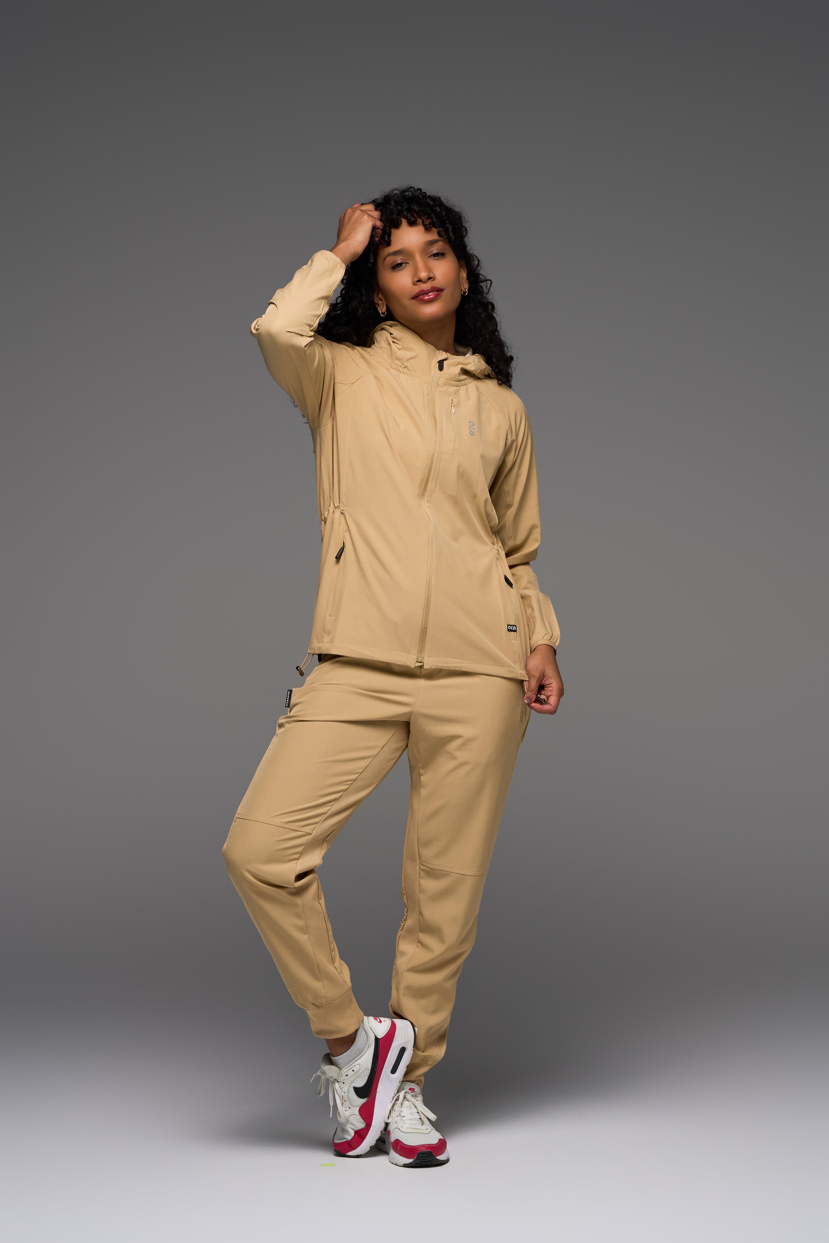 - Estilo moderno y minimalista en un tono neutro, fácil de combinar con otros básicos y conjuntos deportivos.