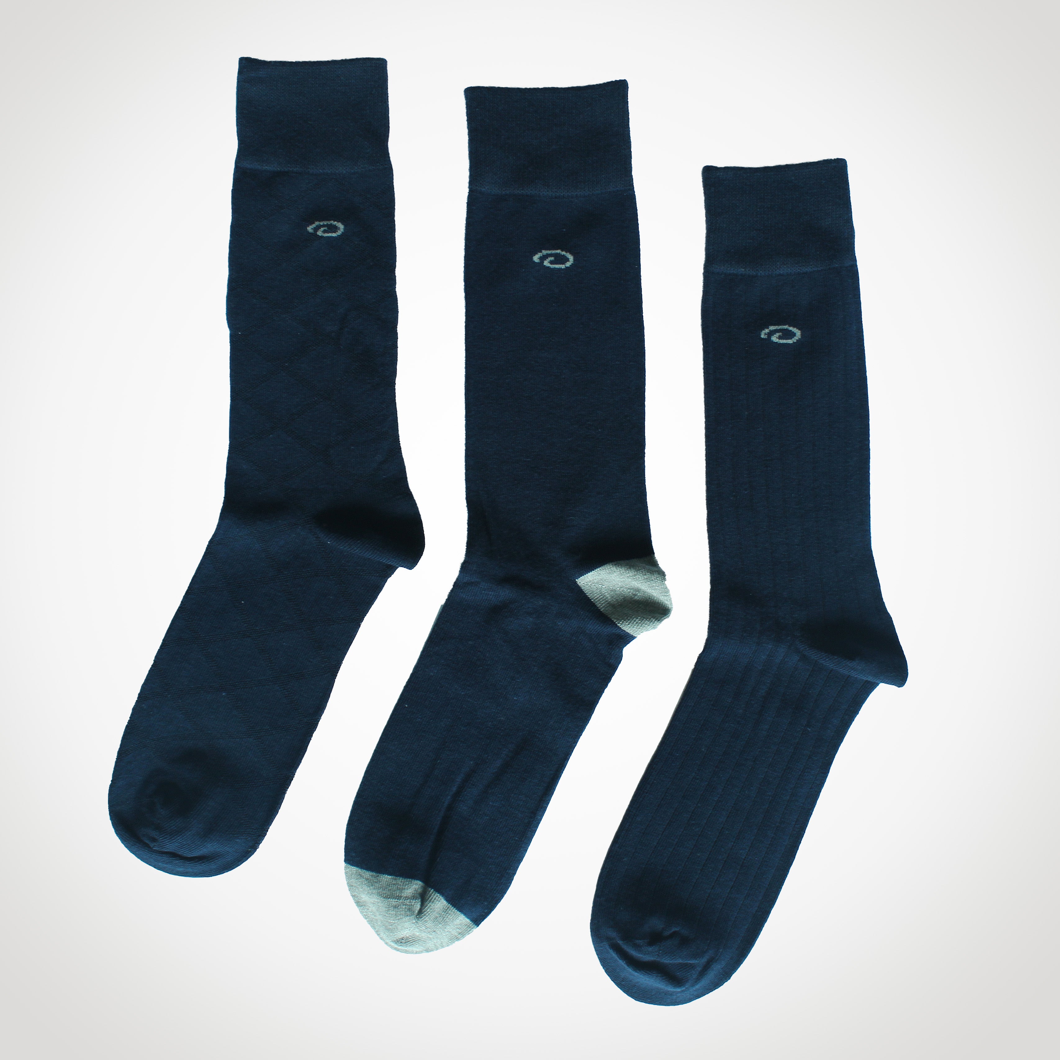 - Conjunto de 3 pares de medias para caballero en color azul marino profundo, con acabado uniforme.