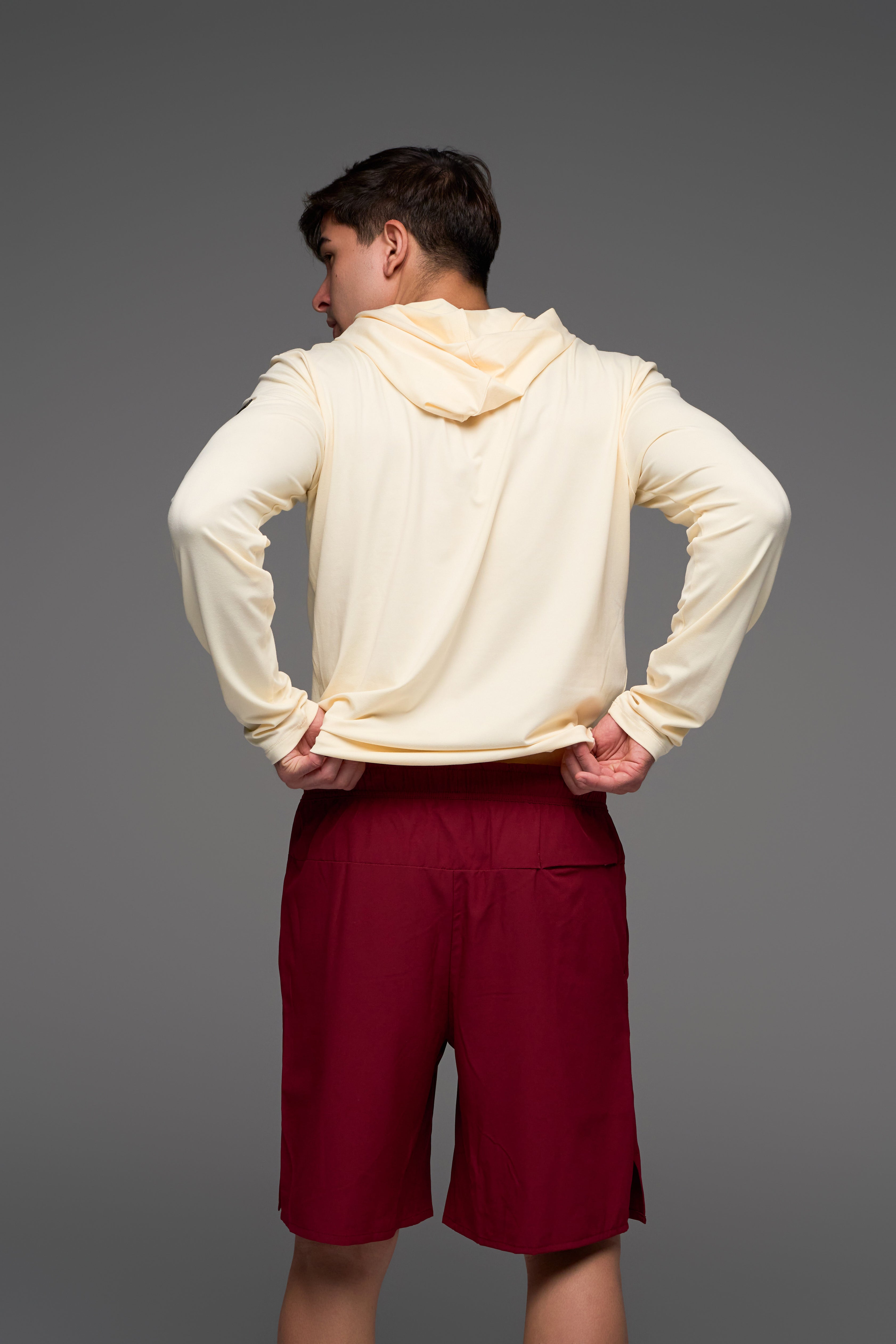 - Color burgundy profundo que facilita combinar con diferentes prendas deportivas.