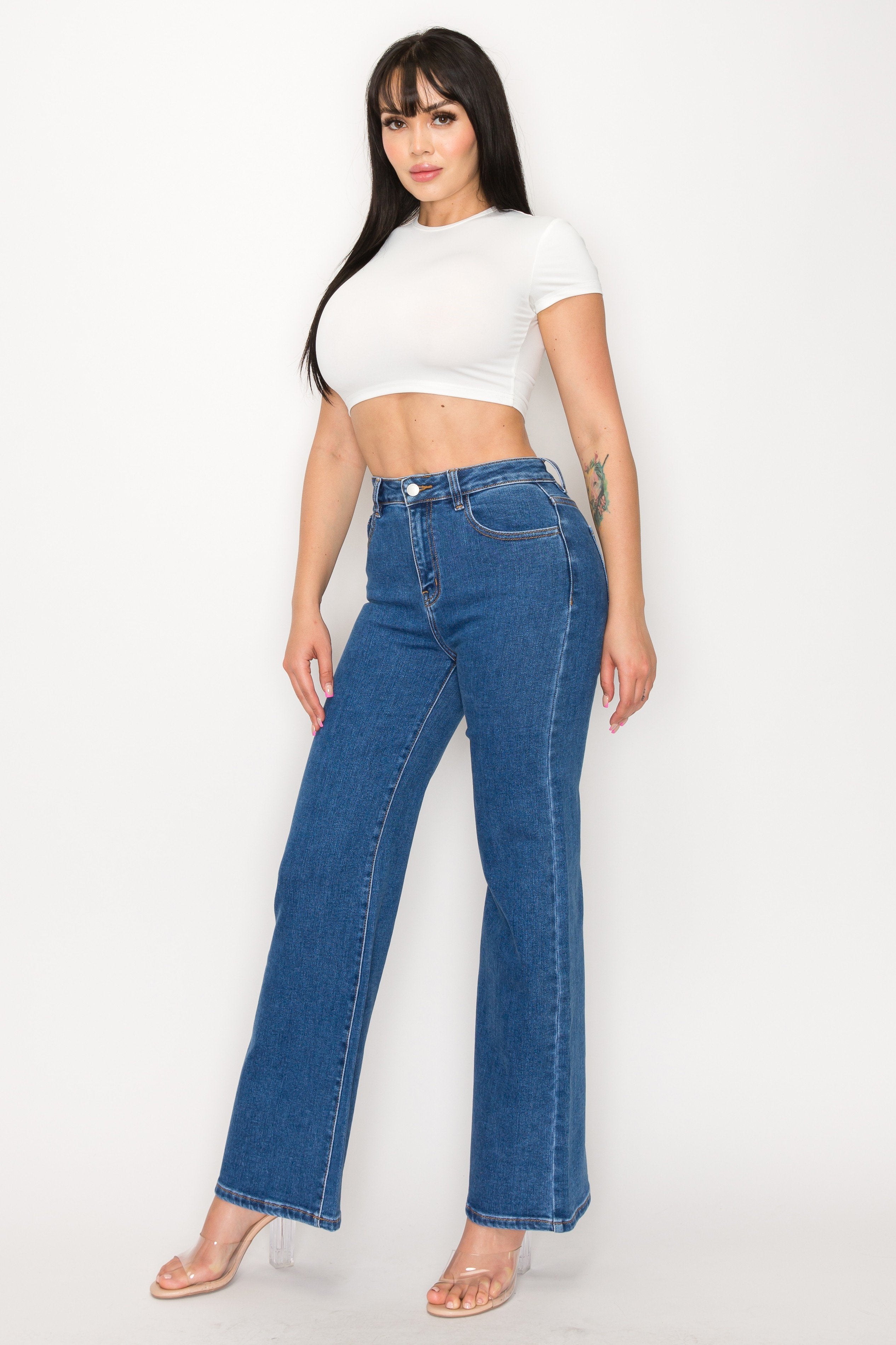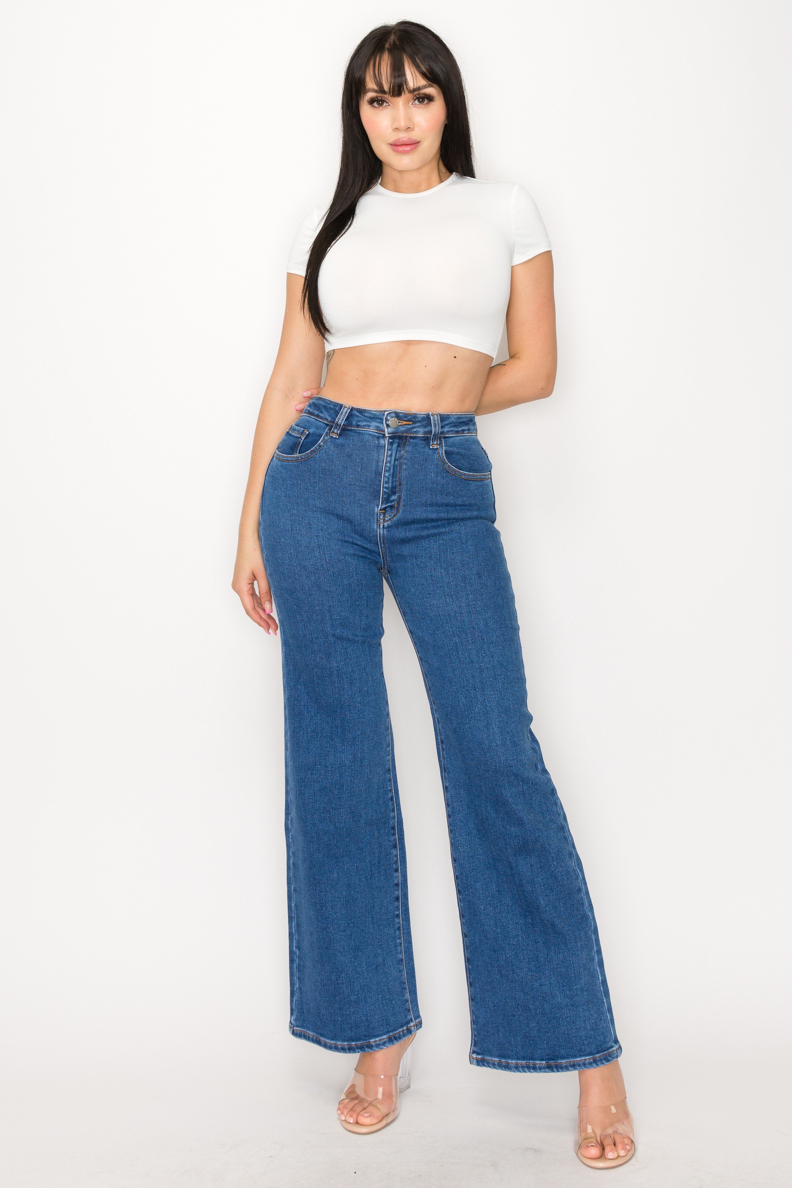 - Tiro alto y pierna amplia para un ajuste cómodo y favorecedor.