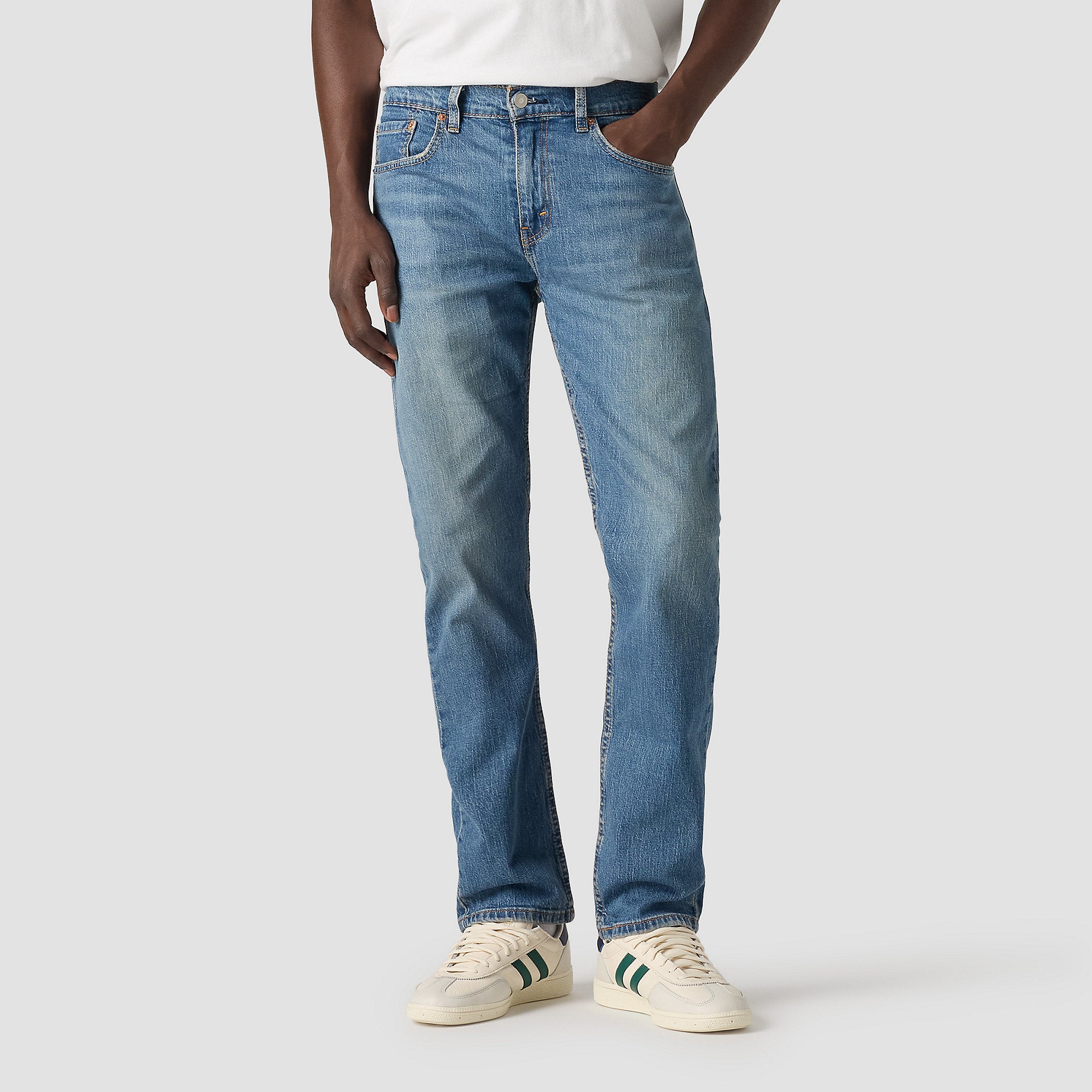 - Cierre y detalles: Bragueta con botón y cremallón; costuras en tono naranja característico de Levi's.