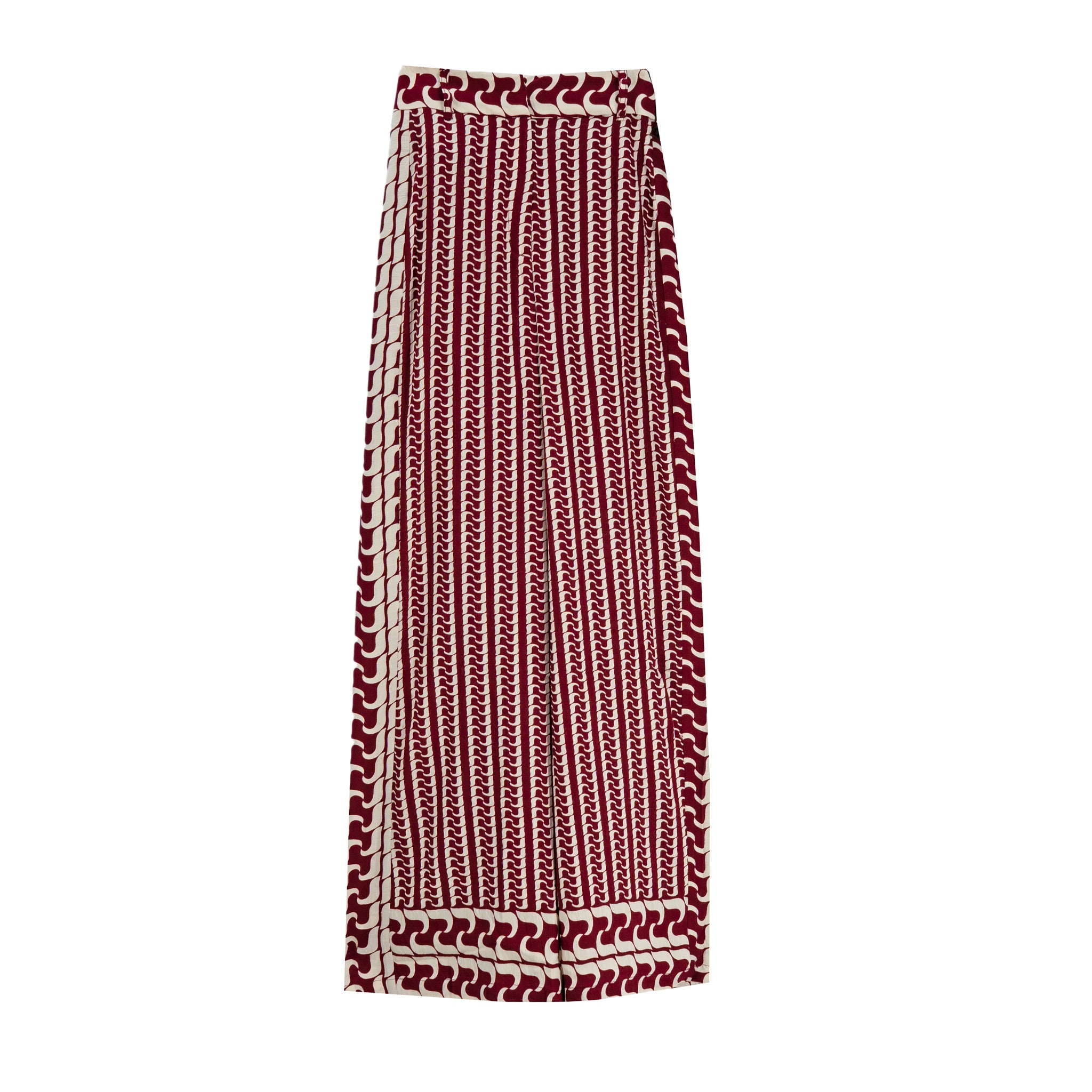 - Estampado en tonos vino y marfil que aporta un toque distintivo al look.