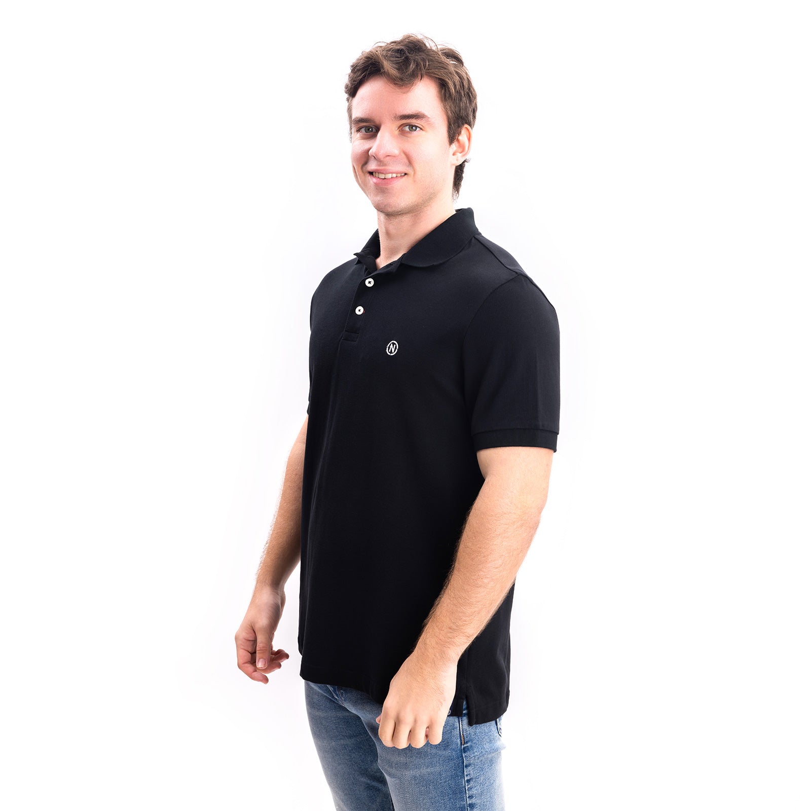 - Logotipo discreto en el pecho que añade una marca de estilo sin llamar la atención.