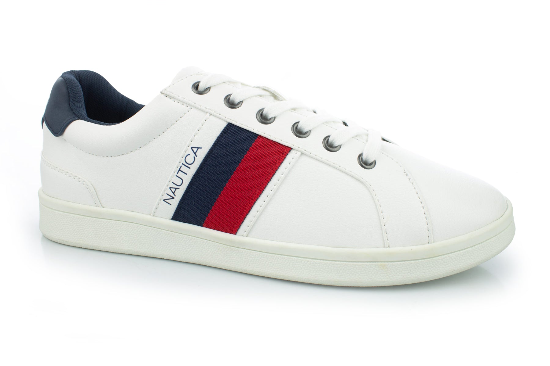 El Tenis Nautica Henrey para Caballeros es un calzado casual pensado para hombres que buscan comodidad y estilo en su día a día. Su diseño limpio en blanco, acentuado por una banda tricolor y el branding Nautica, se adapta fácilmente a cualquier look urbano.