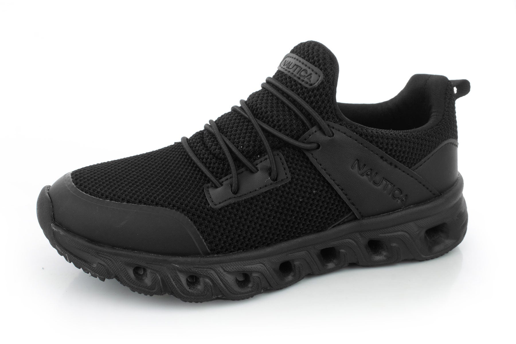 - Estilo neutro en negro que combina con uniformes o looks casuales, manteniendo la versatilidad como tenis para niños de Nautica.