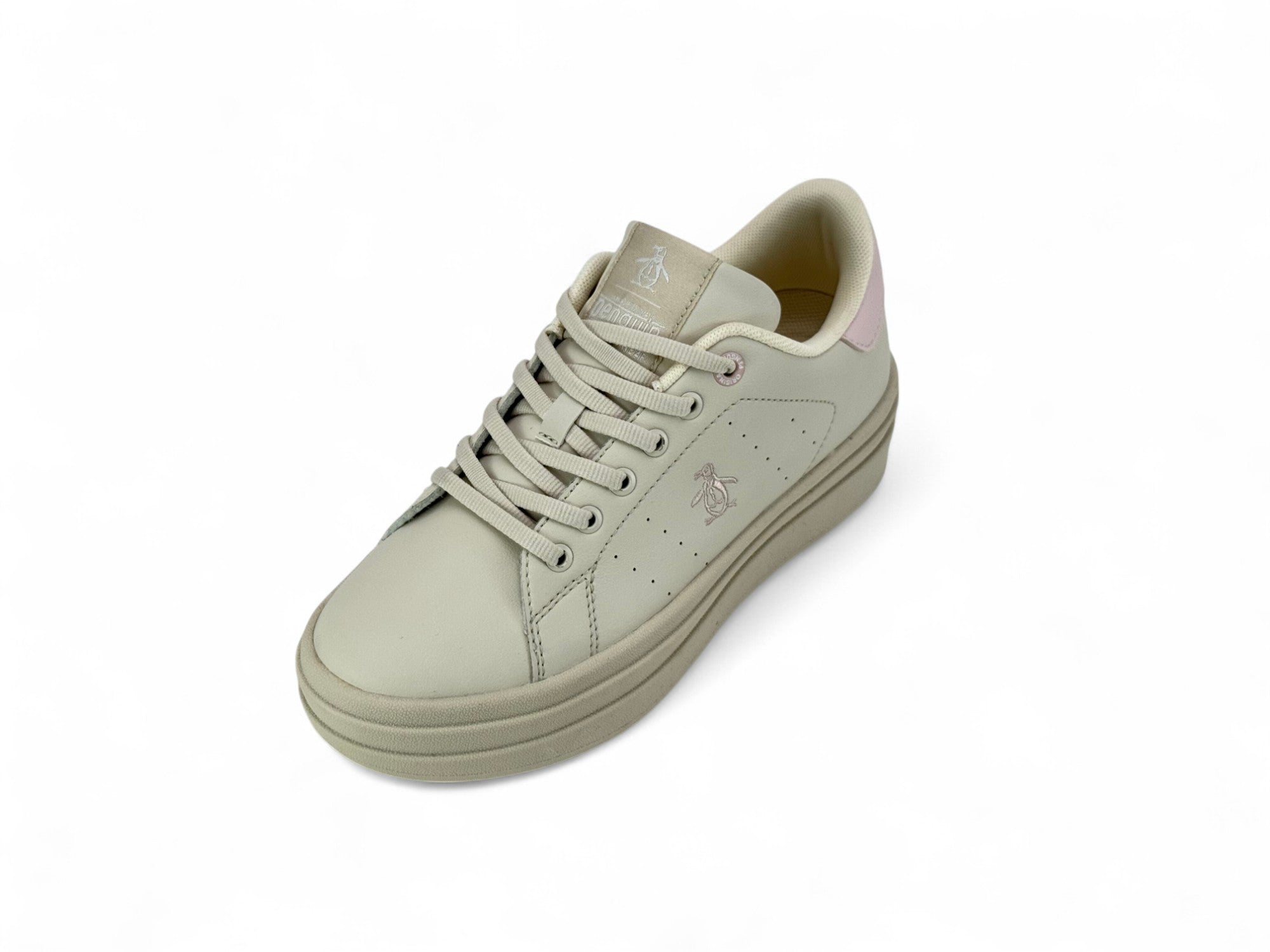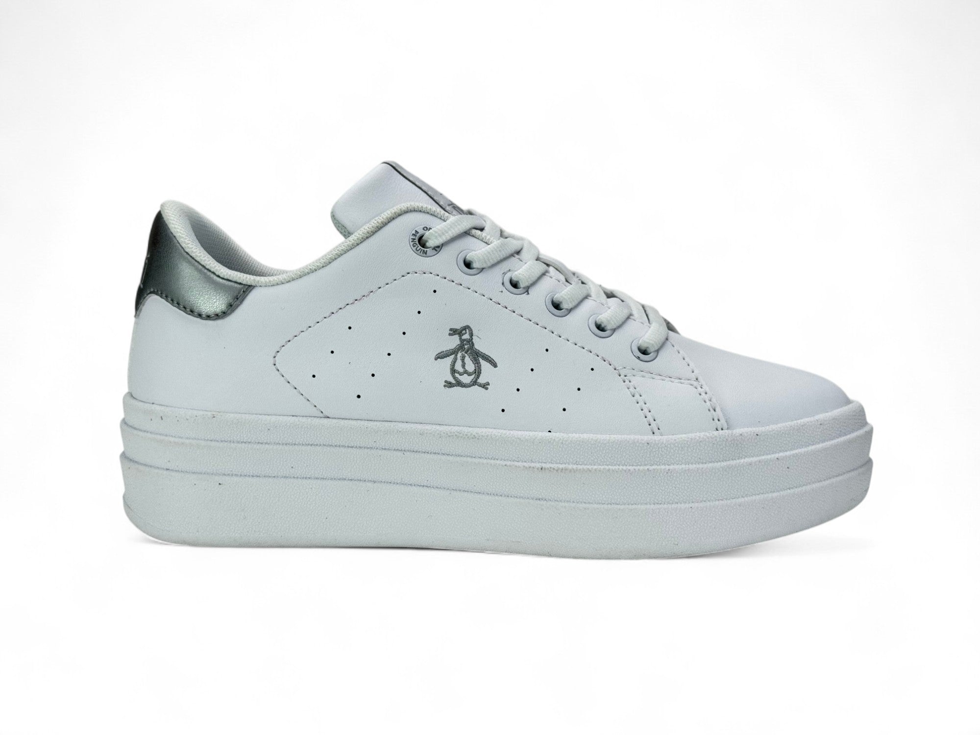 Este tenis ofrece un aspecto actual y versátil que acompaña tus días con comodidad y confianza. La plataforma aporta presencia sin complicaciones, mientras las perforaciones permiten una ventilación ligera para uso diario. El detalle metalizado y el logotipo del pingüino añaden toques distintivos que enriquecen cualquier conjunto casual o urbano.