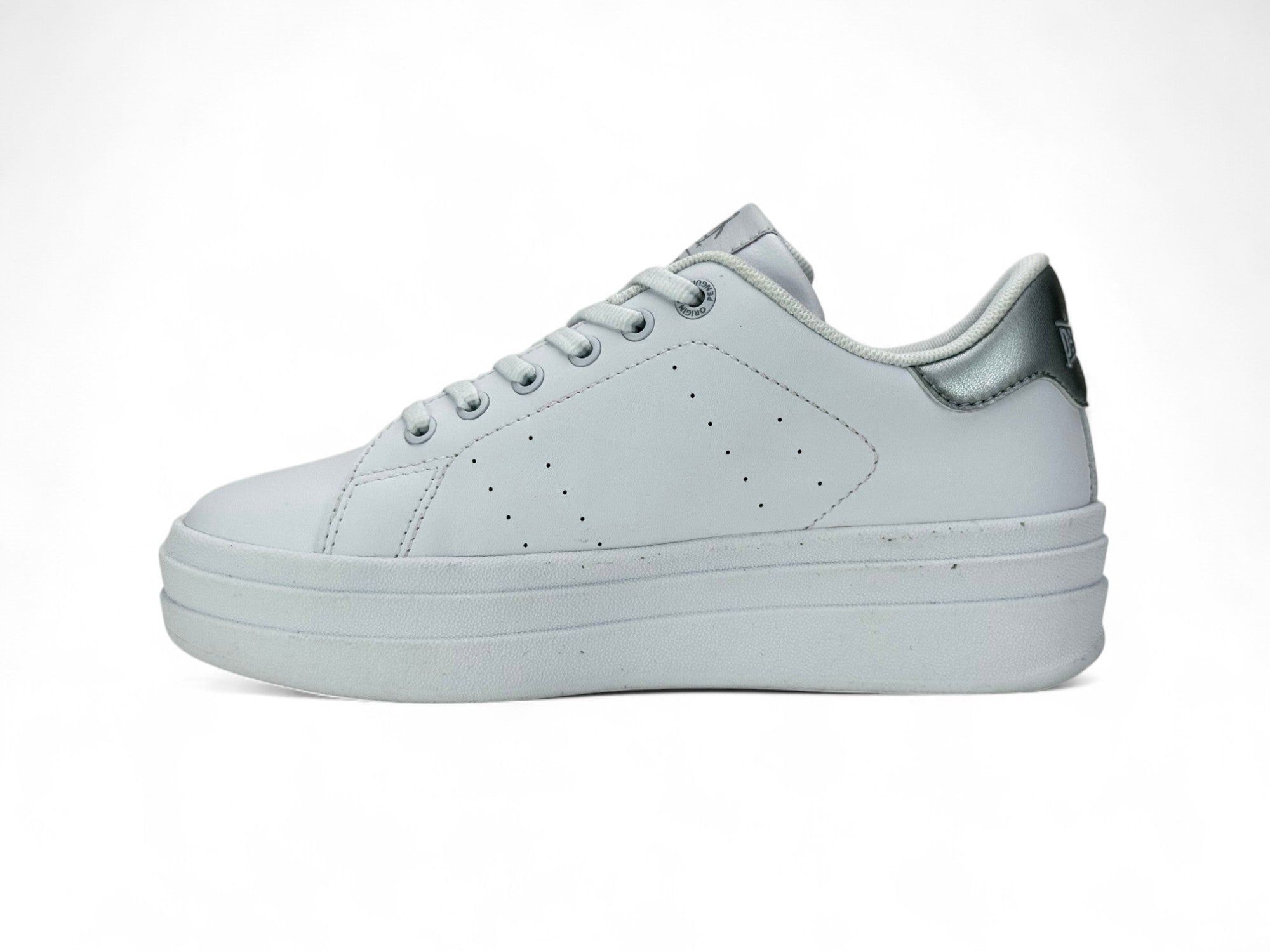 - Color gris claro con detalle metalizado en la zona del talón para un contraste sutil y moderno.