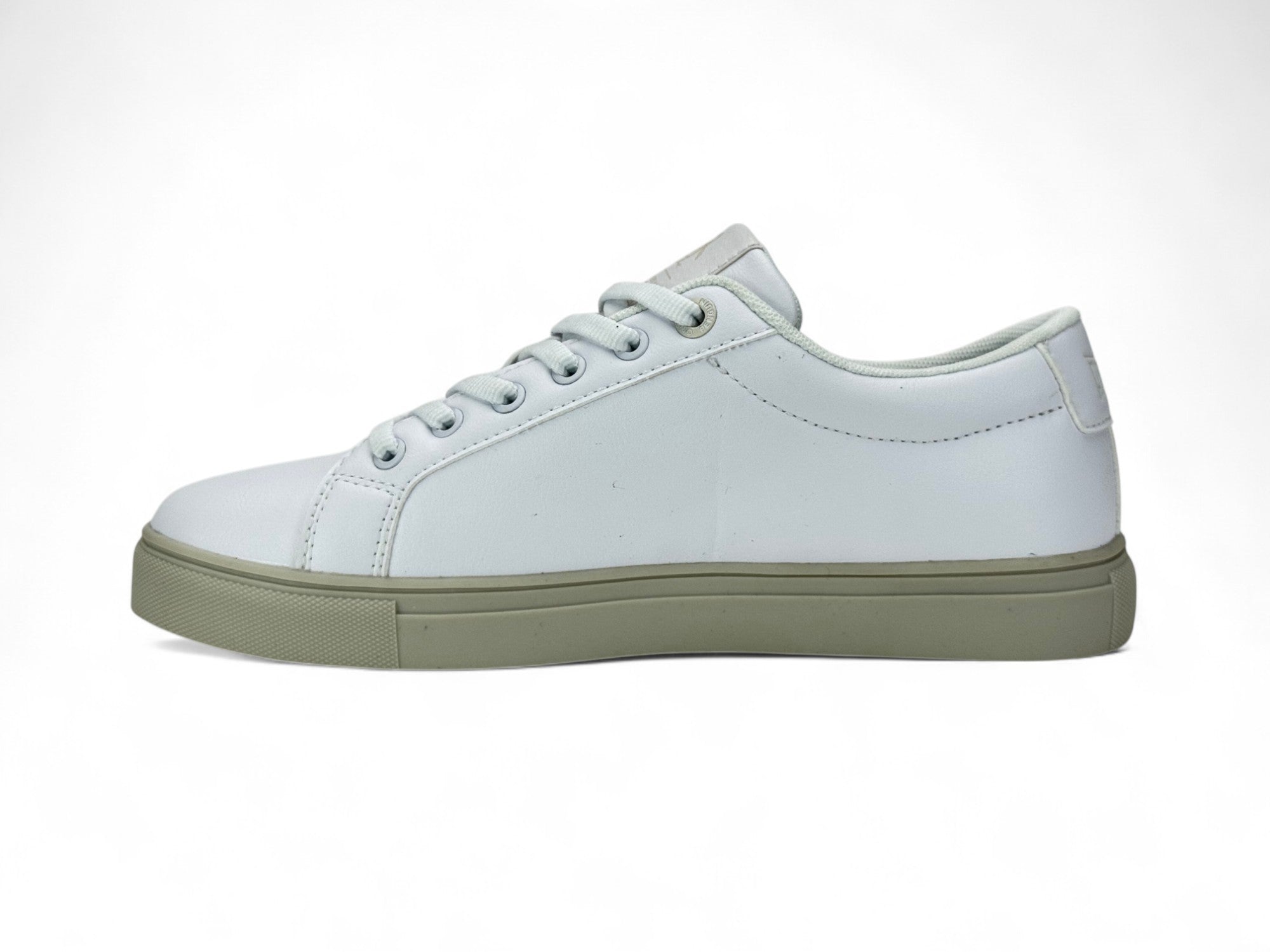 - Parte superior en cuero sintético blanco de acabado suave y resistente.