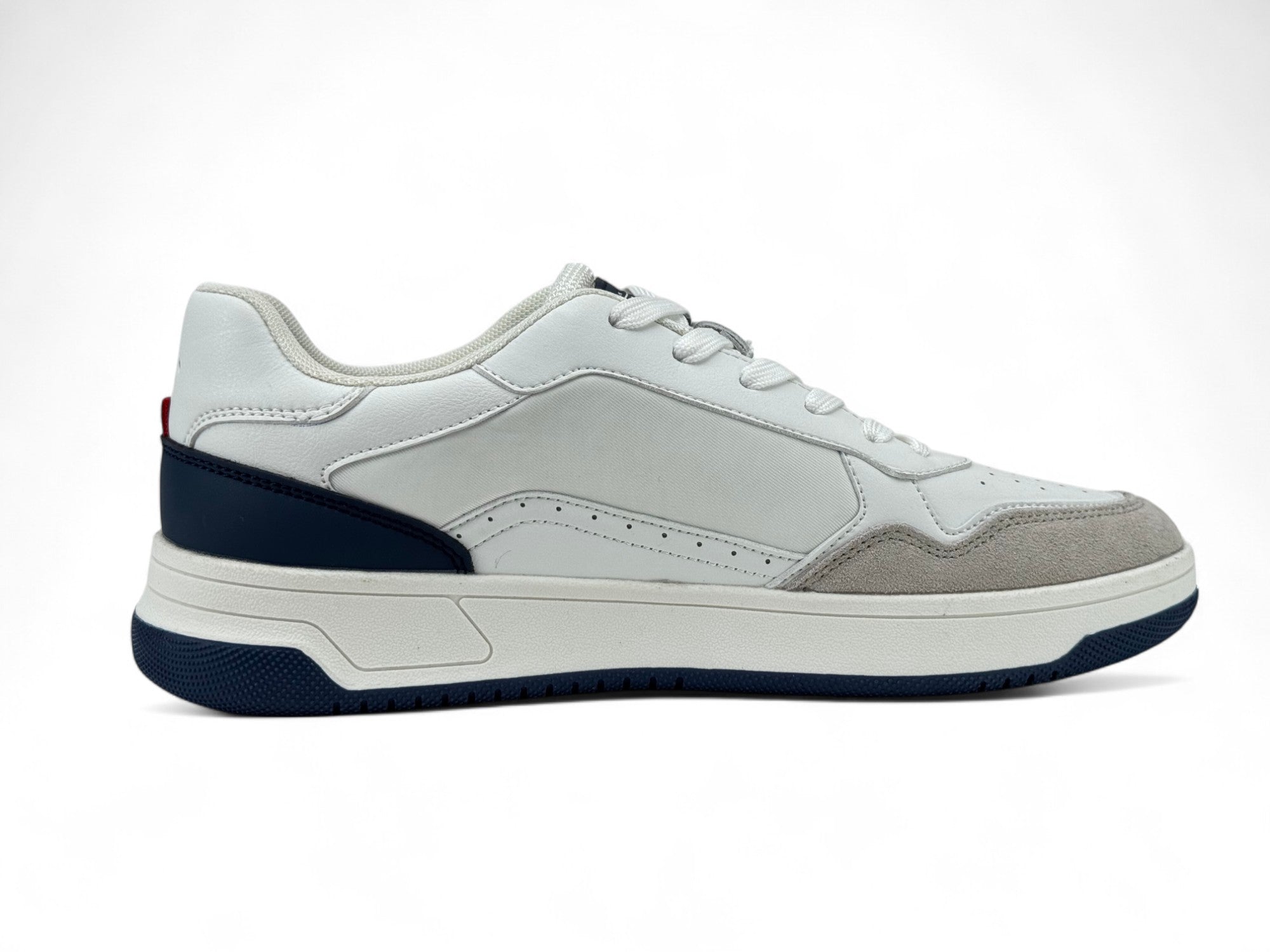 - Diseño en materiales mixtos: parte superior en piel sintética con refuerzos en gamuza suave para un acabado premium.