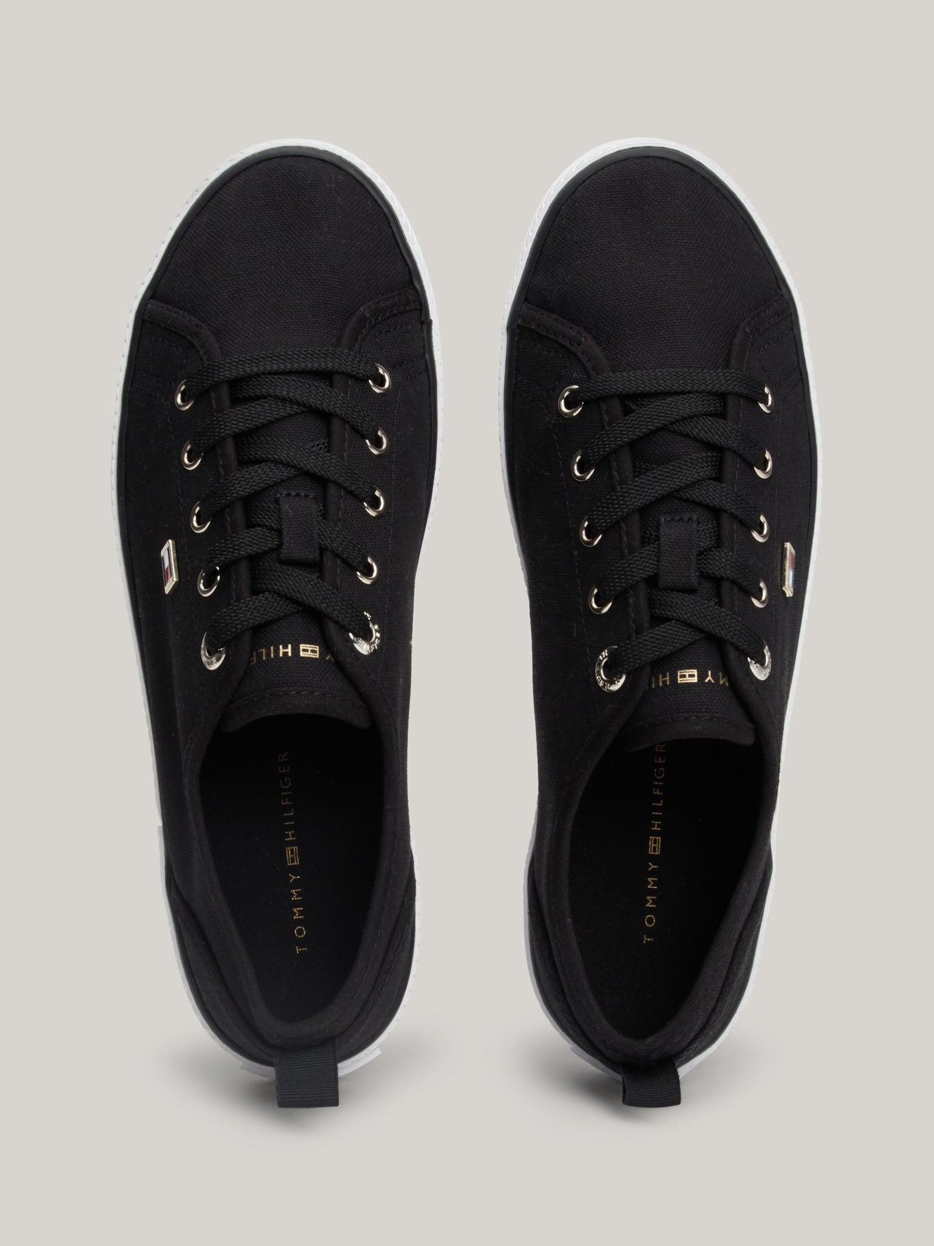 - Logo de Tommy Hilfiger en metal en el lateral, detalle sutil y distintivo.