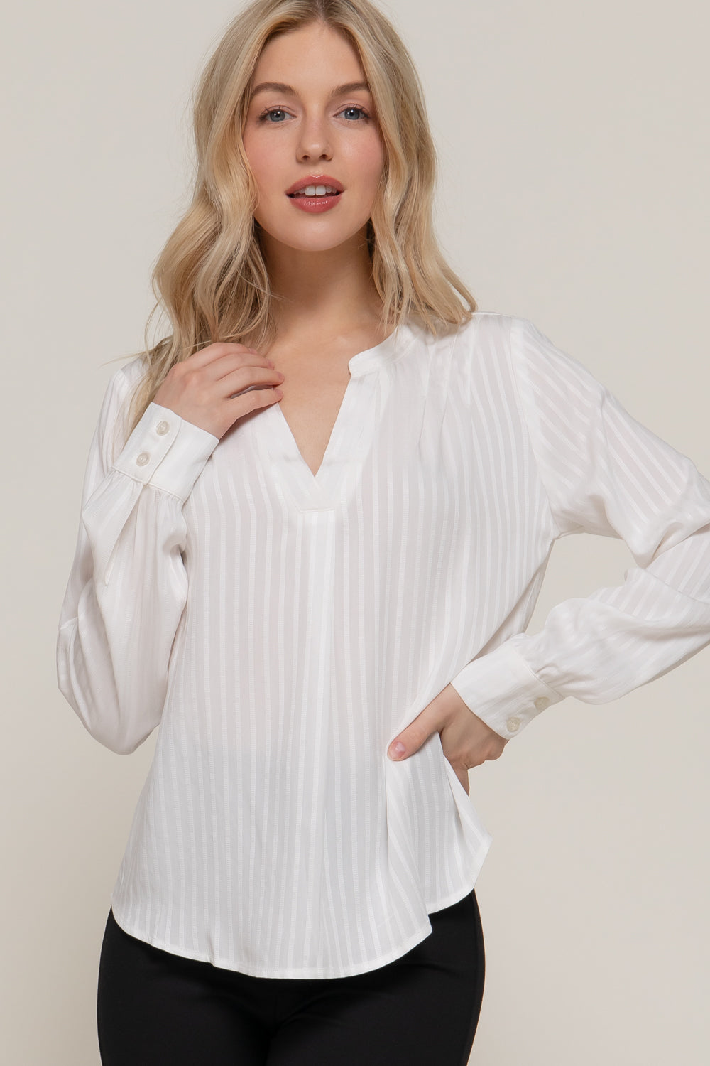 40% Acrílico: Contribuye a la durabilidad, la resistencia a las arrugas y ayuda a que el top mantenga su forma y color lavado tras lavado. El acrílico también puede añadir una sensación de ligereza y una caída más suave al tejido.