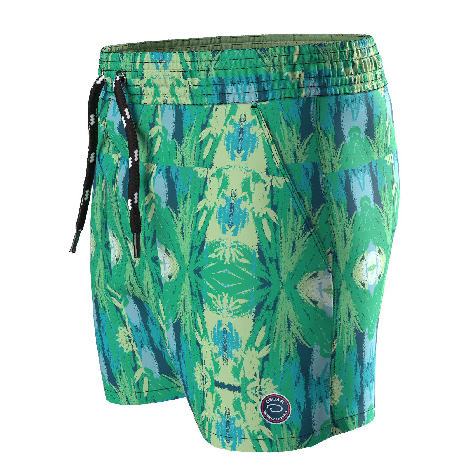 Descubre el Traje de Baño Oscar De La Renta para Caballeros, una prenda de lujo pensada para hombres que buscan estilo y comodidad en la playa o la piscina. Con un estampado tropical en verdes y azules, es una opción sofisticada que se adapta a cualquier destino de verano. Código del producto: A23SM12-GRN.