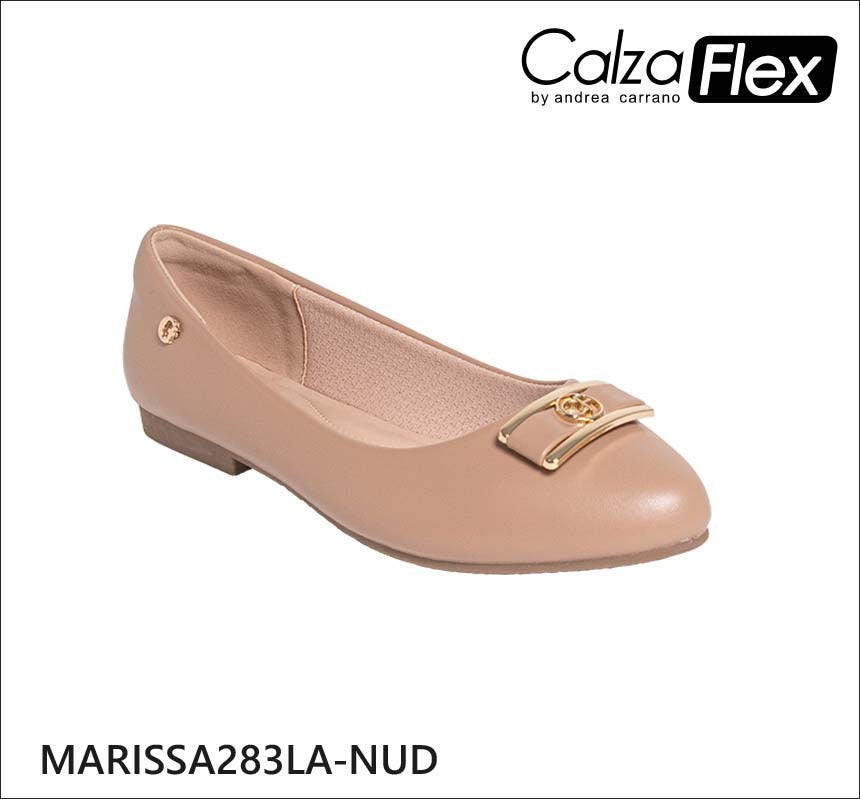 Zapatos Calzaflex Marissa para damas son una bailarina elegante y cómoda, diseñada para uso diario. Con un acabado nude suave y un toque dorado en la puntera, es una opción versátil que complementa cualquier look.