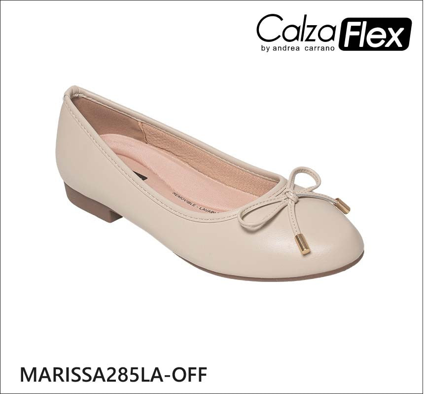 Zapatos Calzaflex Marissa para Damas son unas bailarinas planas pensadas para mujeres que buscan comodidad sin sacrificar estilo. Con un acabado en tono camel y un lazo decorativo en la puntera, este par ofrece un look pulido para el día a día y ocasiones informales.